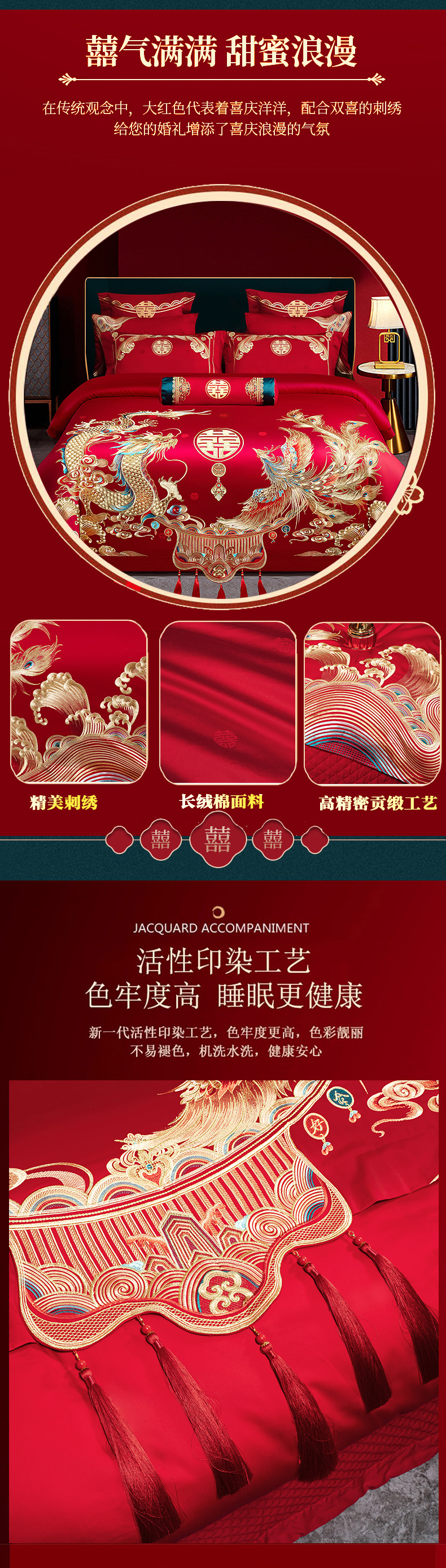 当前位置: 91家纺网 > 商品网购 > 床品套件 > 多件套 > 多件套 > 柏拉图 2025新款100s长绒棉贡缎提花重工艺刺绣婚庆四件套多件套 龙凤情深