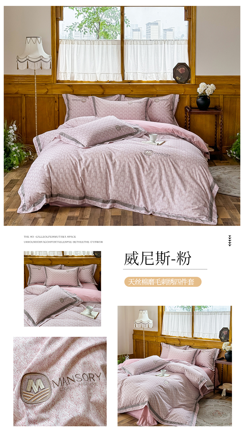 (总)巧玲珑 20025新款工艺款刺绣绣花加厚天丝棉四件套,威尼斯-粉,威尼斯-粉紫,威尼斯-蓝灰,威尼斯-浅灰,威尼斯-浅驼,寻梦-草绿,寻梦-粉豆沙,寻梦-灰,寻梦-蓝,寻梦-米黄