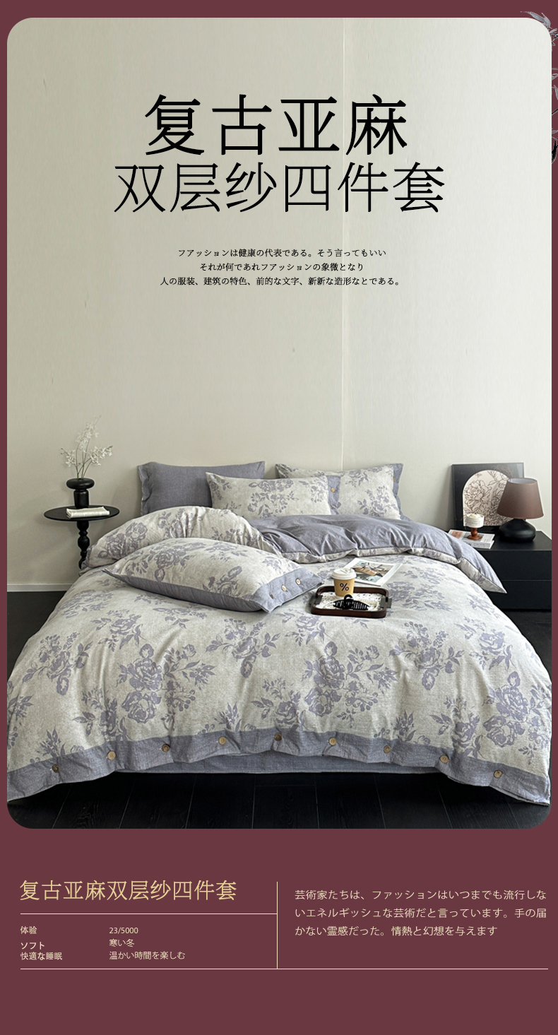 (总)漫仙阁家纺 2025新款秋冬新款复古风高端原麻四件套,组合图仅供参考,茶颜,春日来信,古奈绿,锦瑟,南城旧梦,秋意浓