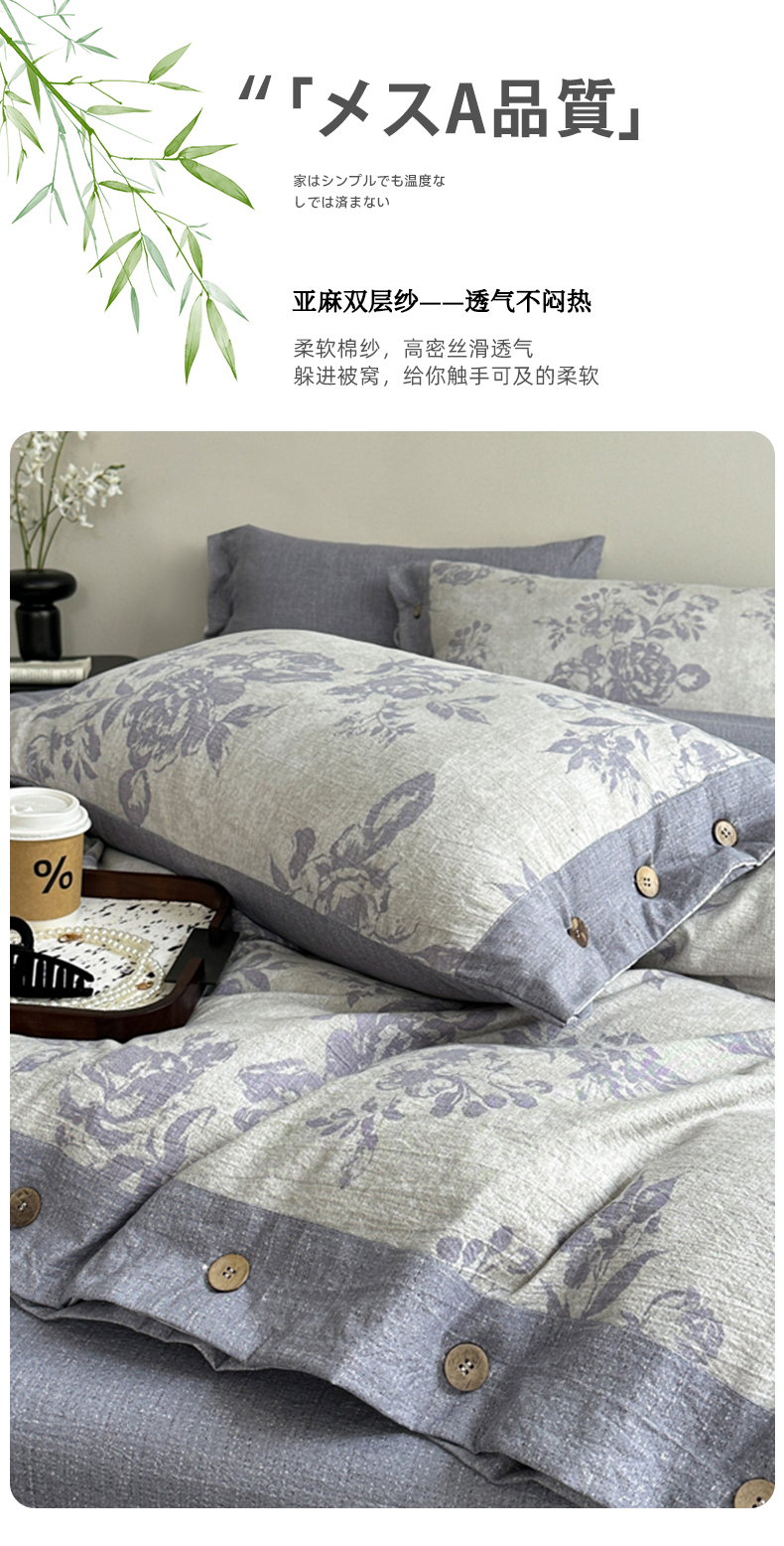 (总)漫仙阁家纺 2025新款加厚高克重原麻复古风印花四件套,布袋子,粉黛,花蕾-咖,花蕾-绿,金枝玉叶,锦簇,盛夏,素锦,向阳花开,一抹香,绽放