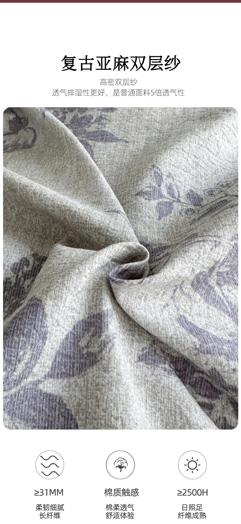 商品名称:漫仙阁家纺 2025秋冬新品加厚高克重复古风双层纱印花四件套 露娜