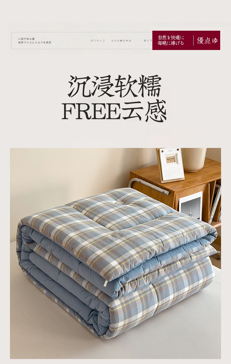 当前位置: 91家纺网 > 商品网购 > 被子 > 棉被 > 宝士康家纺 2025新品10A抗菌无印风学生季春秋被/被芯/跨境/外贸 天蓝中格