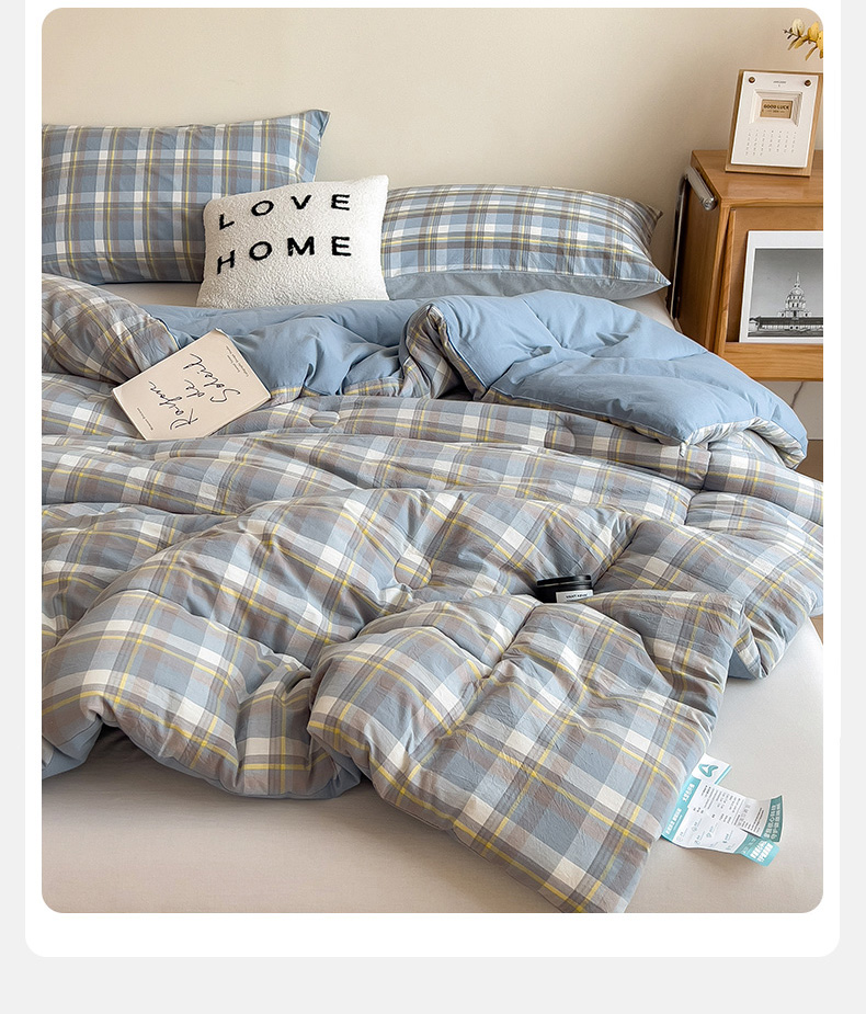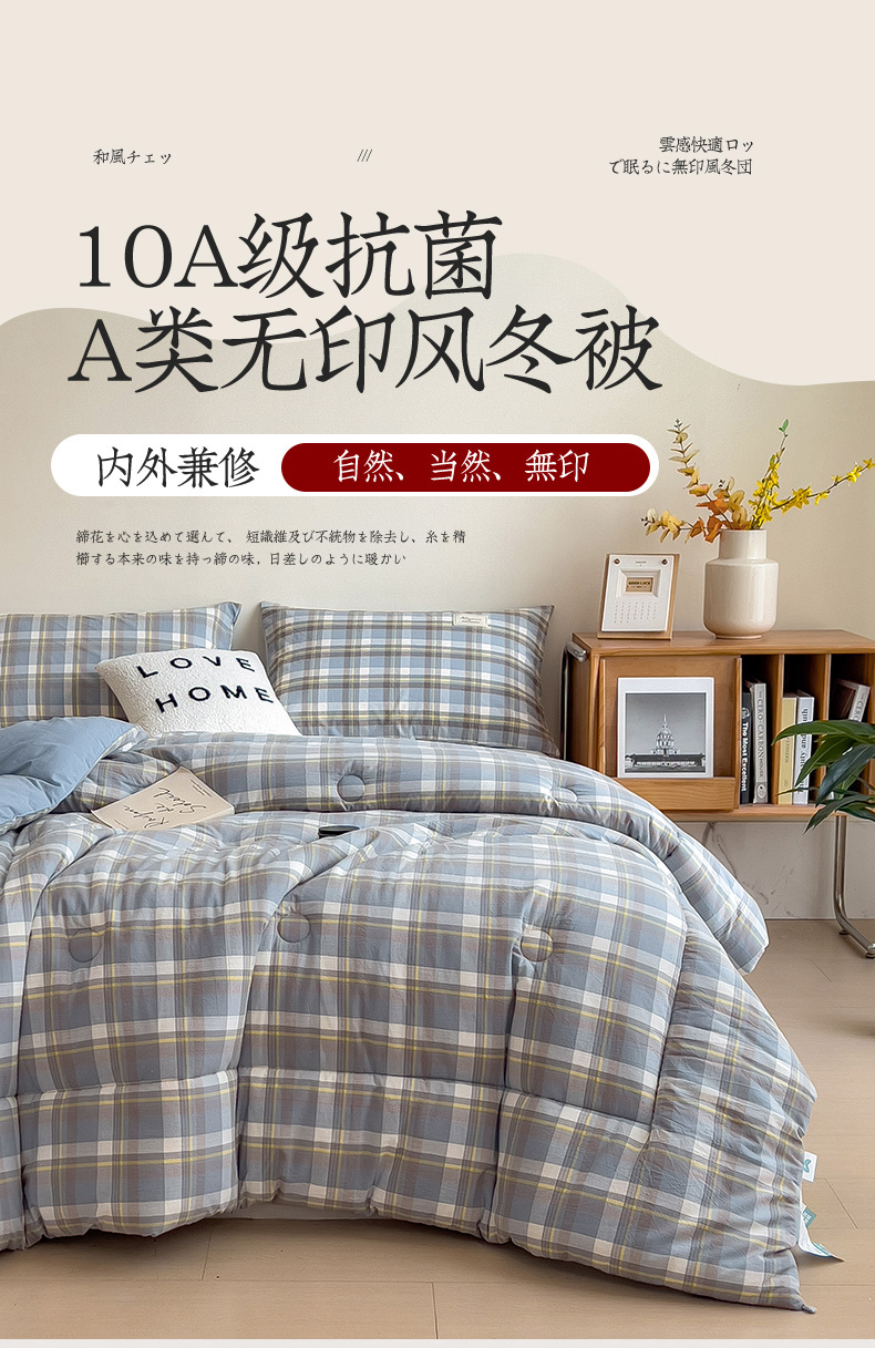 宝士康家纺 2025新品10A抗菌无印风学生季春秋被/被芯/跨境/外贸 天蓝中格
