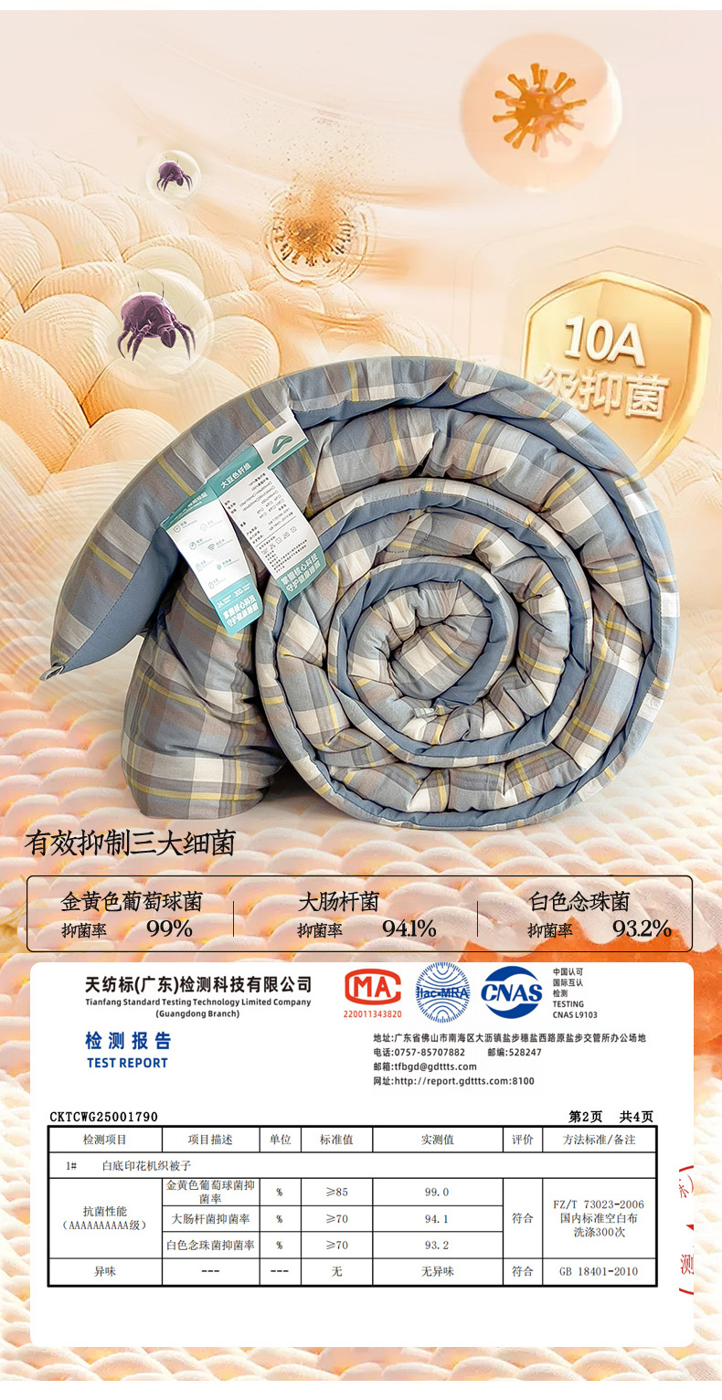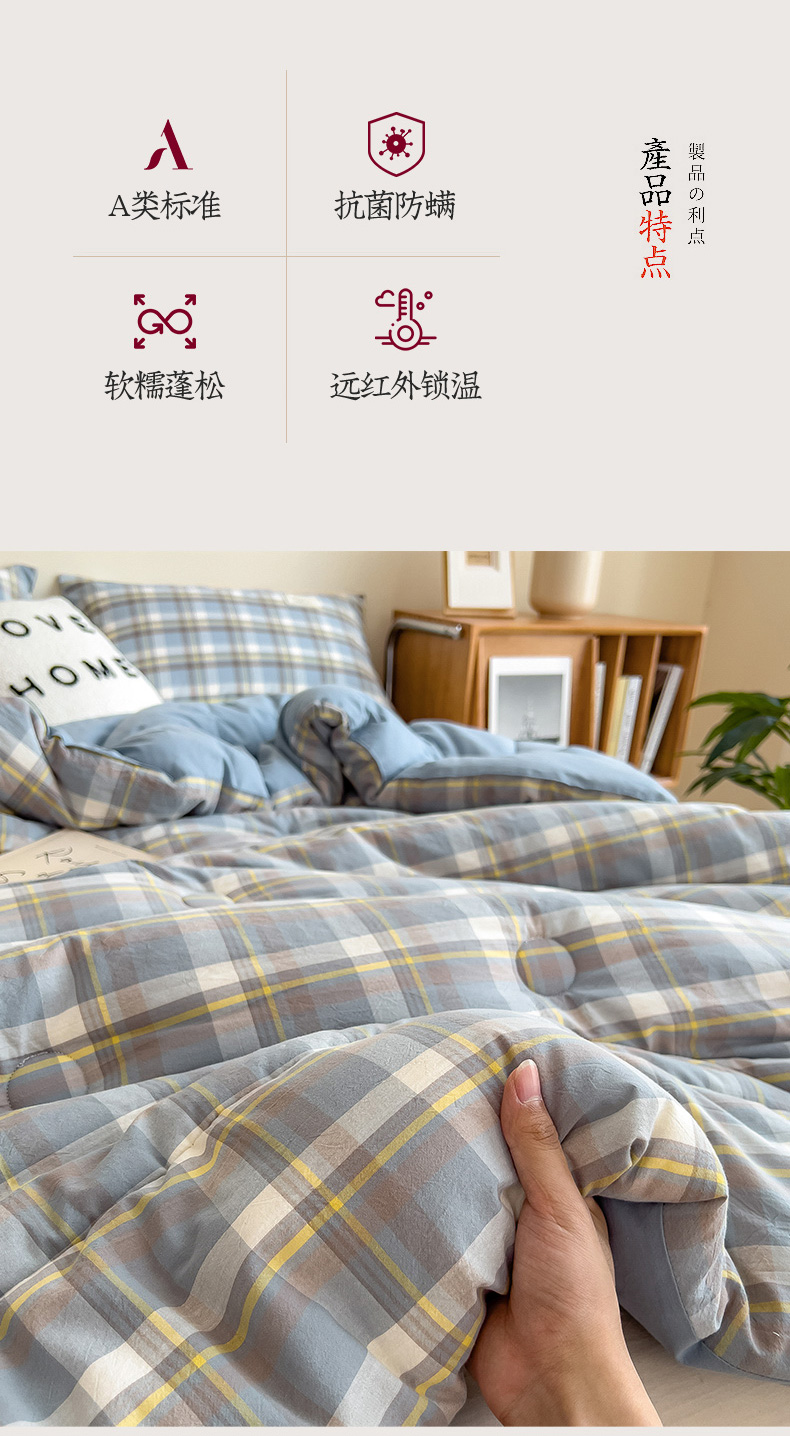 • 91家纺网 家纺一手货源 找家纺 宝士康家纺 2025新品10A抗菌无印风学生季春秋被/被芯/跨境/外贸 天蓝中格