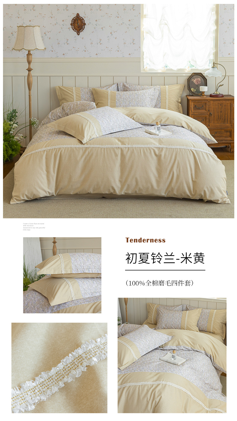 当前位置: 91家纺网 > 商品网购 > 床品套件 > 四件套 > 全棉普通四件套 > 巧玲珑 2025新款织带花边工艺款四件套-初夏铃兰 初夏铃兰-豆沙