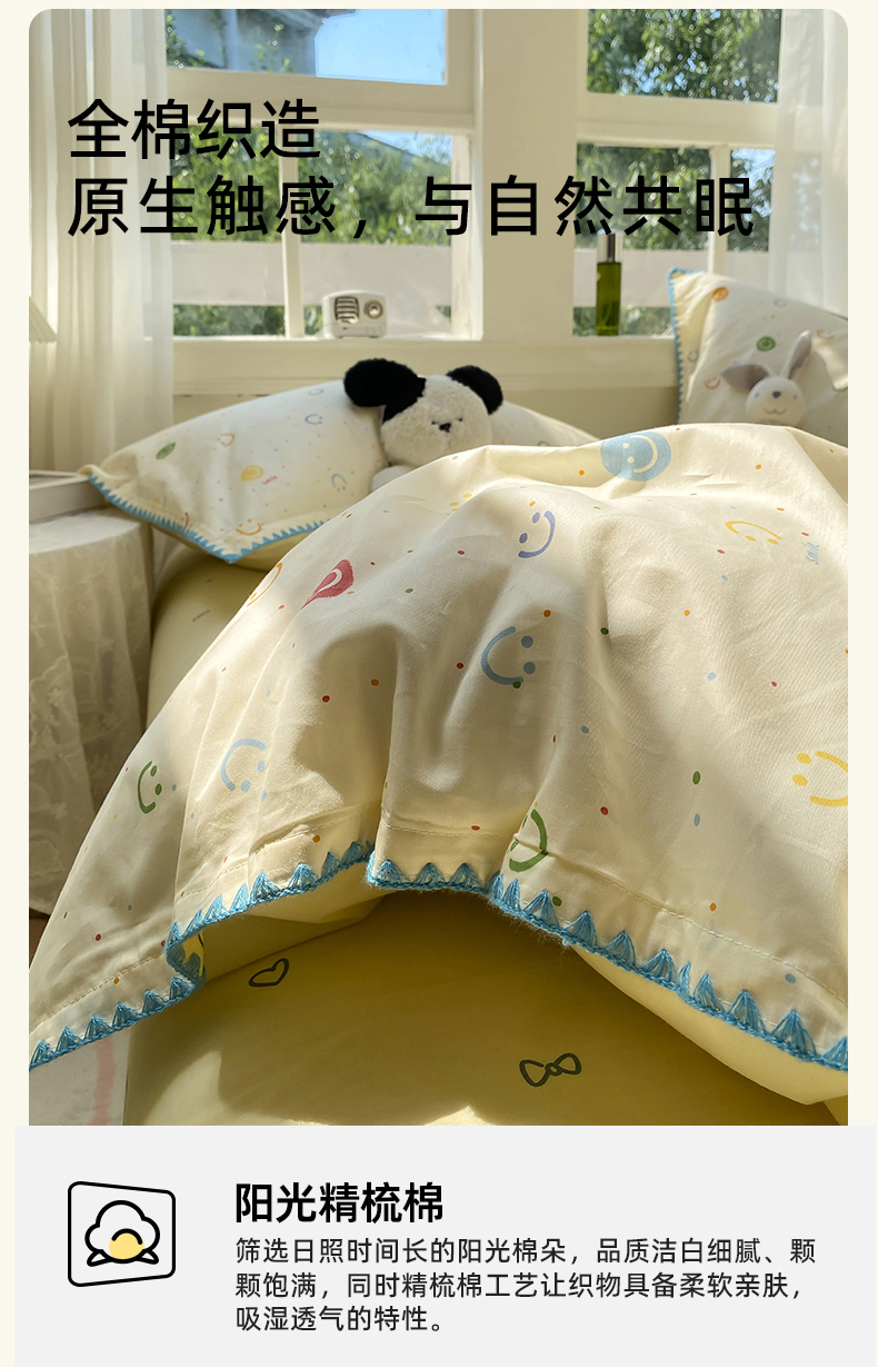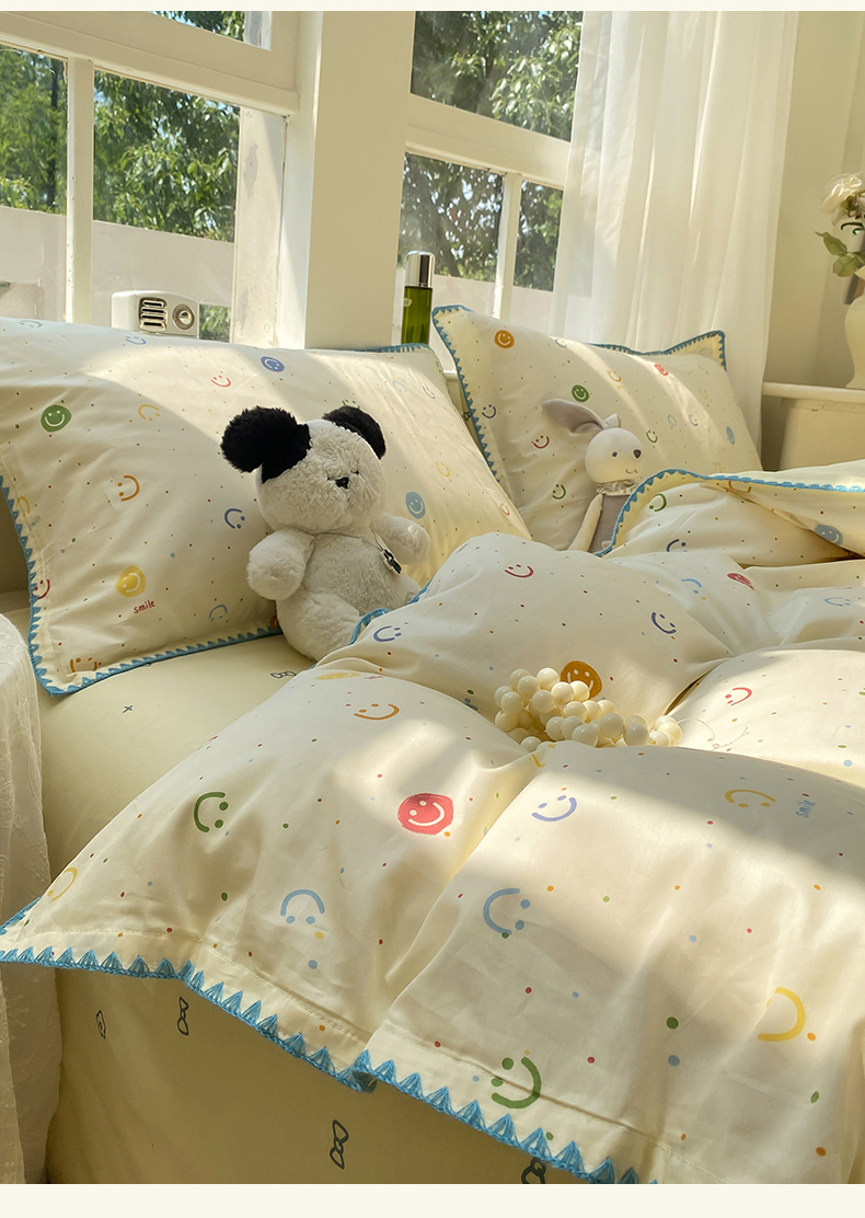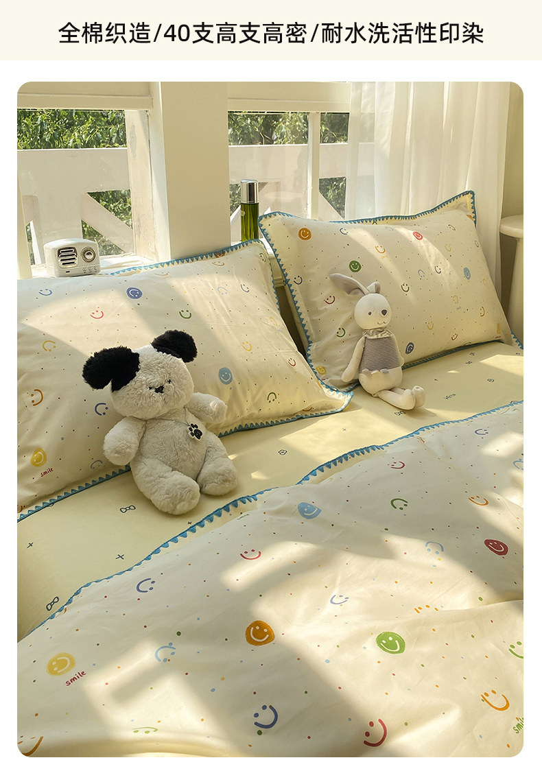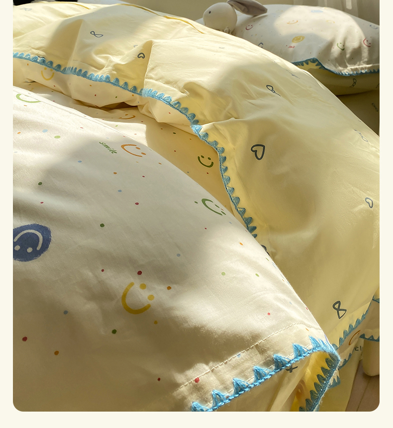 商品名称:浮光家居 2025新款全棉贝壳边系列单被套 多彩笑脸