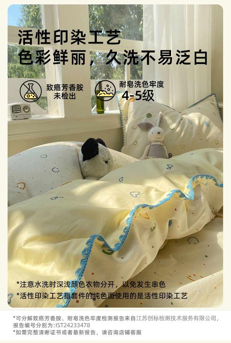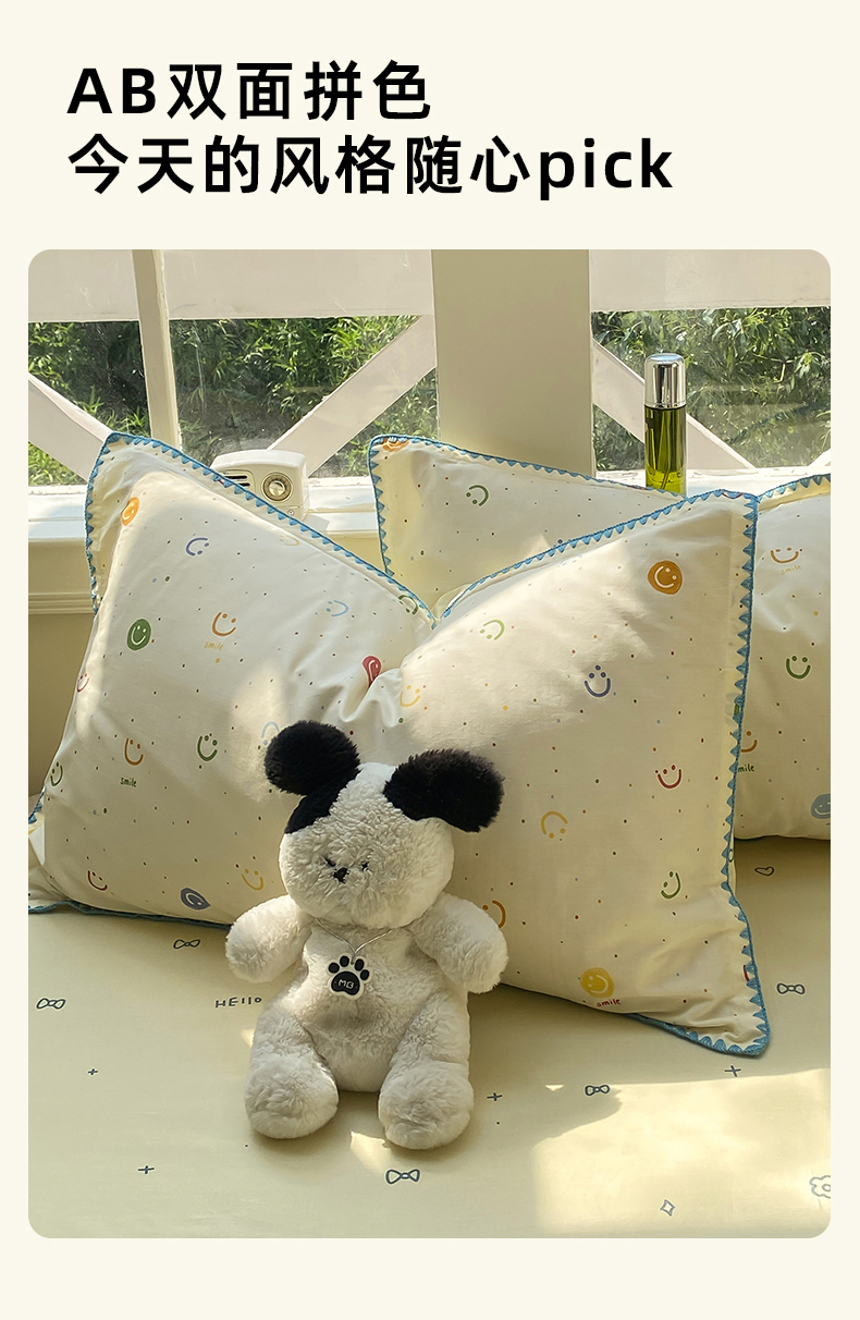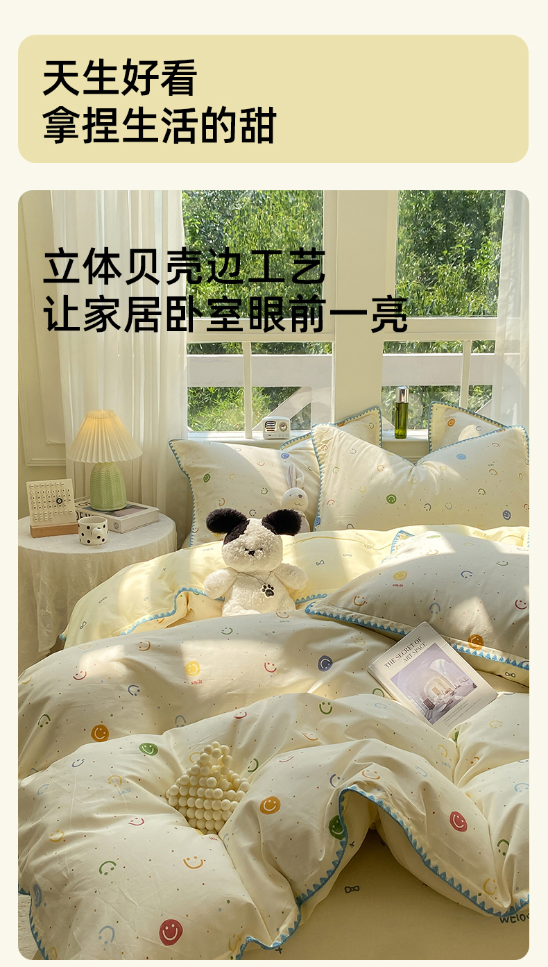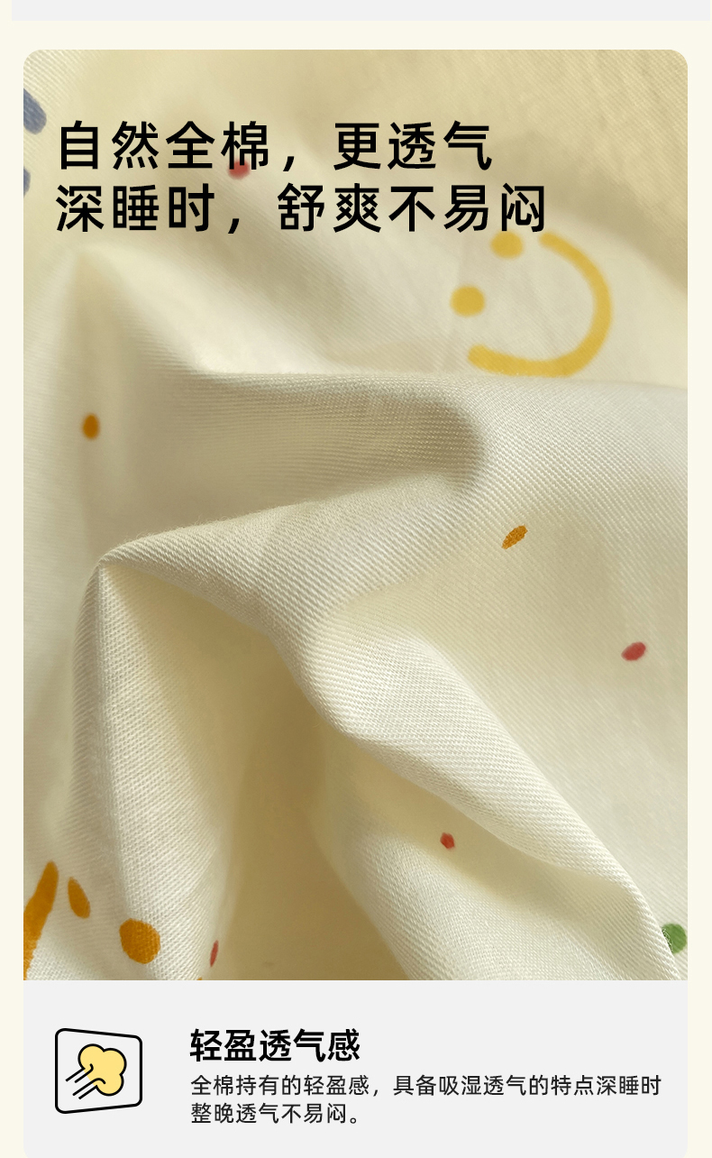 商品名称:浮光家居 2025新款全棉贝壳边系列单被套 多彩笑脸