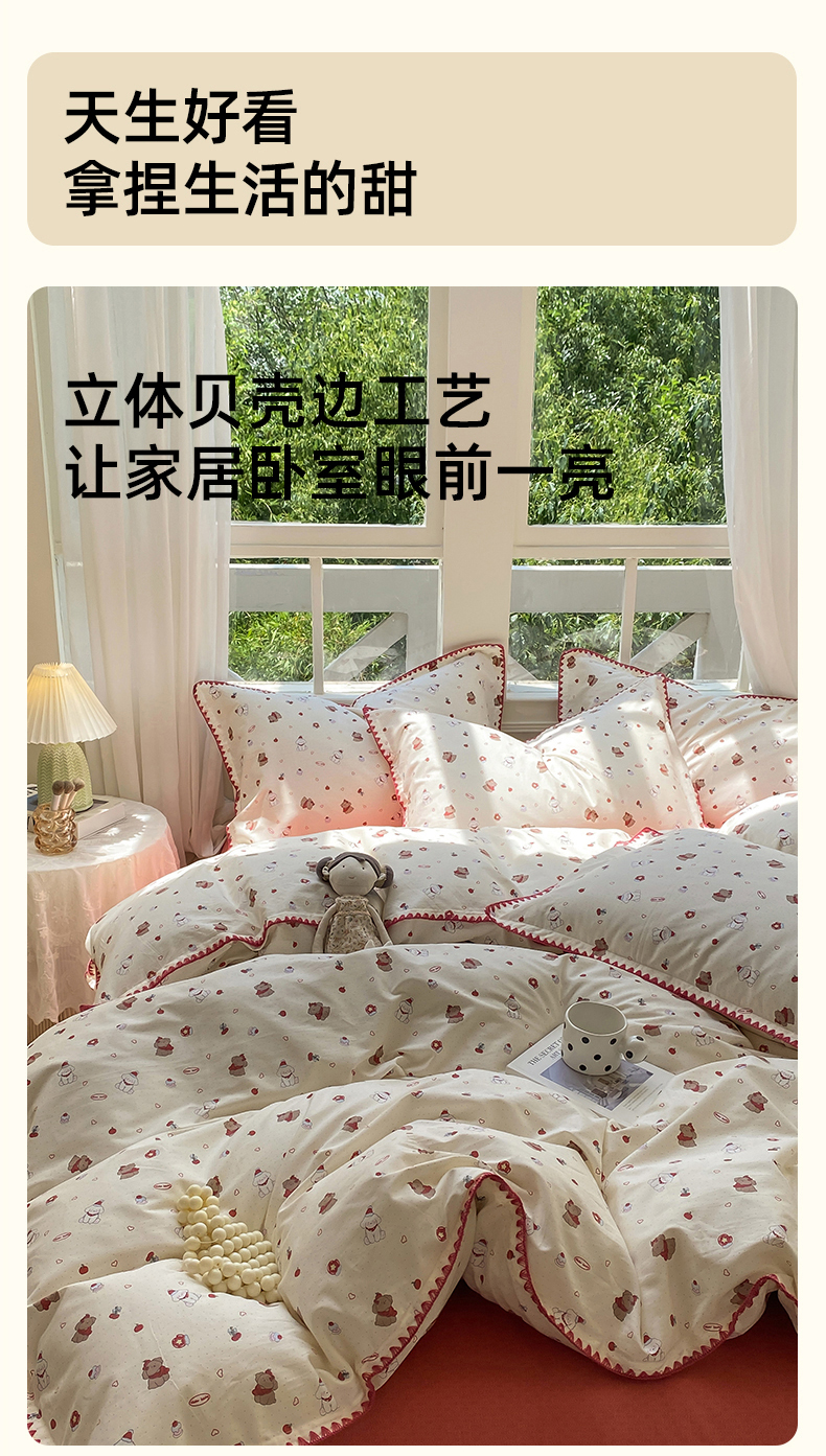 浮光家居 2025新款全棉贝壳边系列单被套 甜卡日常