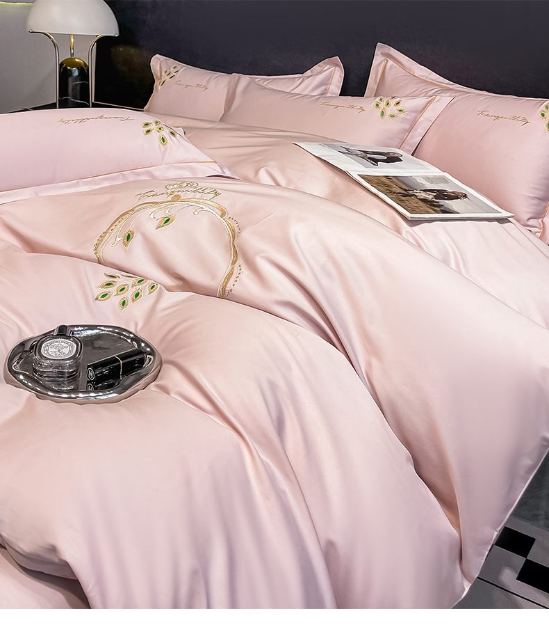 艾迪尚家纺 2025新款120支刺绣长绒棉四六件套(新拍)-单被套 孔雀-豆沙粉
