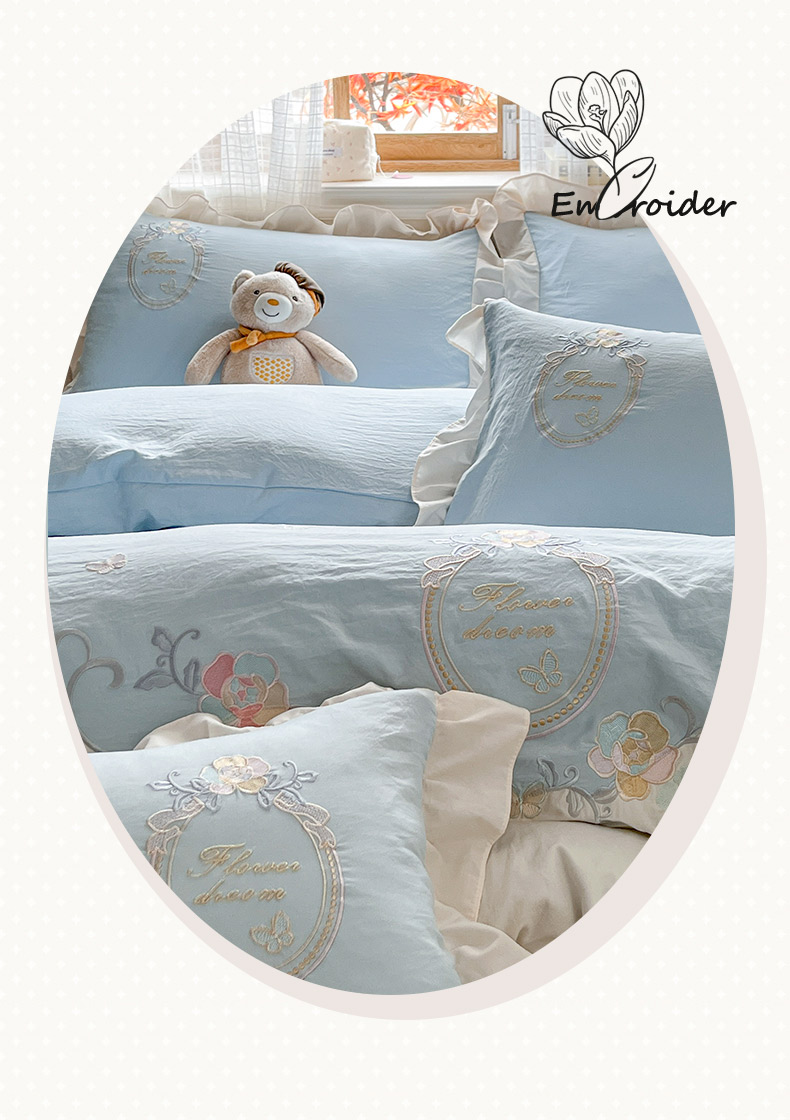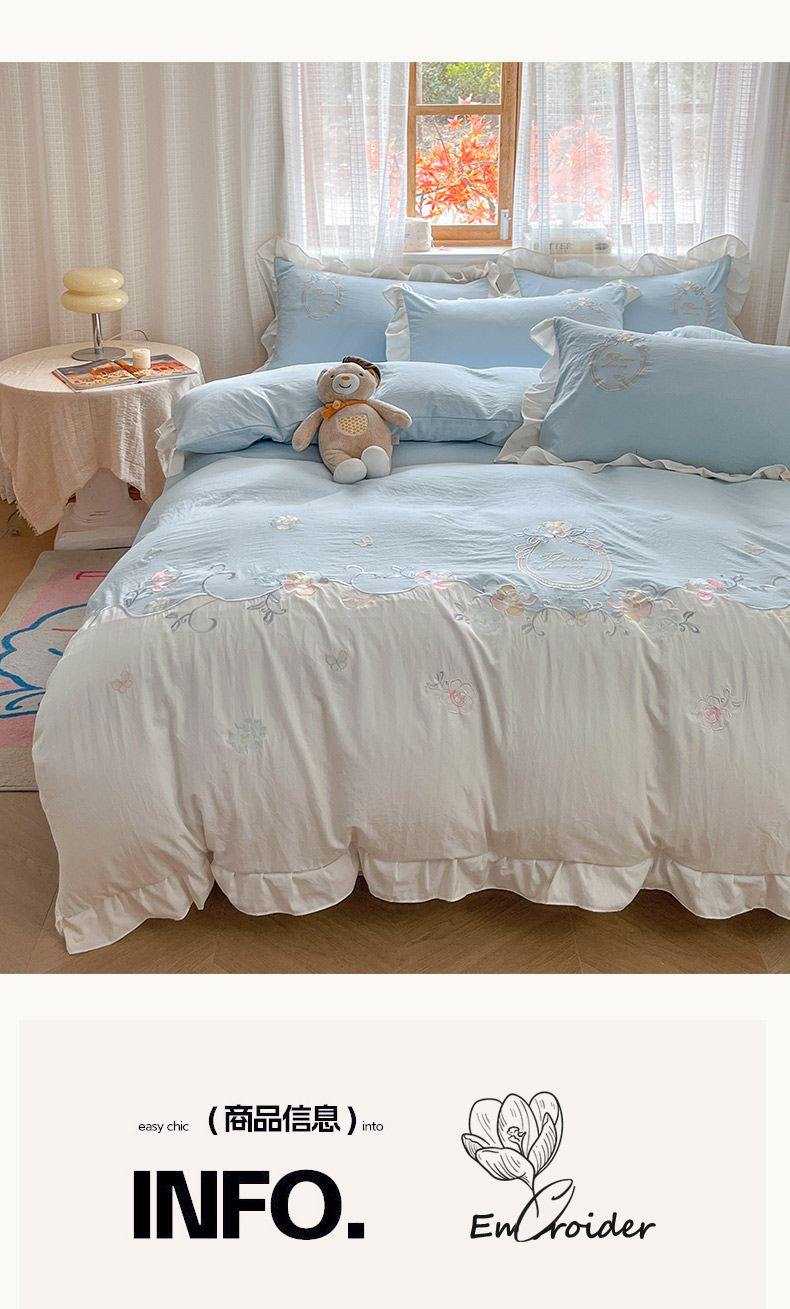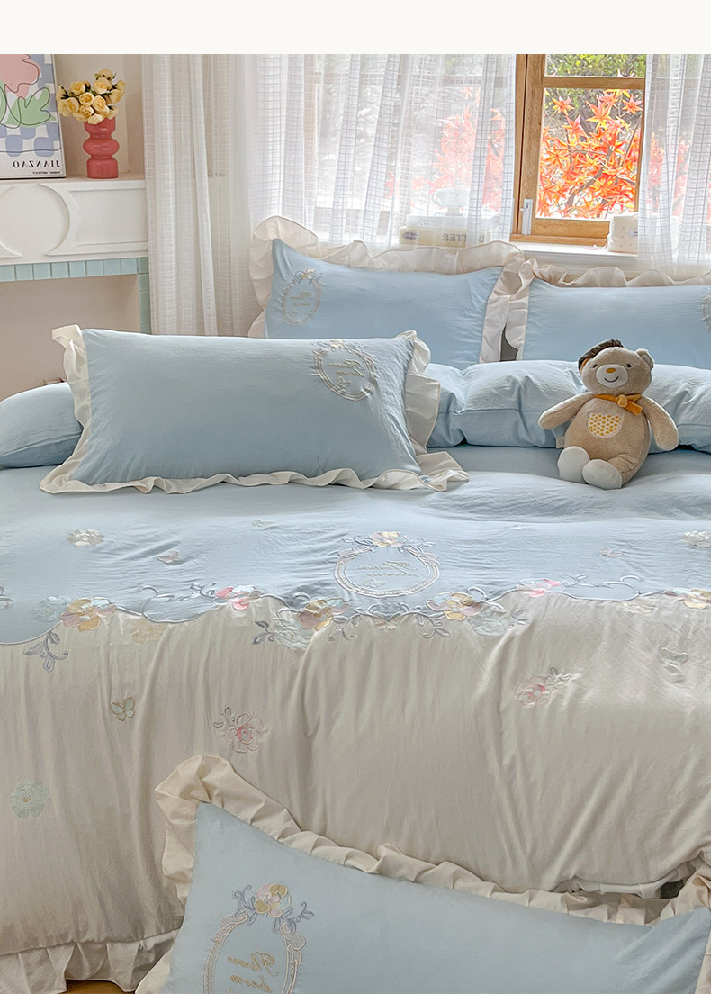 商品名称:ab家纺 2025新款夏莉儿系列水洗棉绣花四件套 夏莉儿-水绿