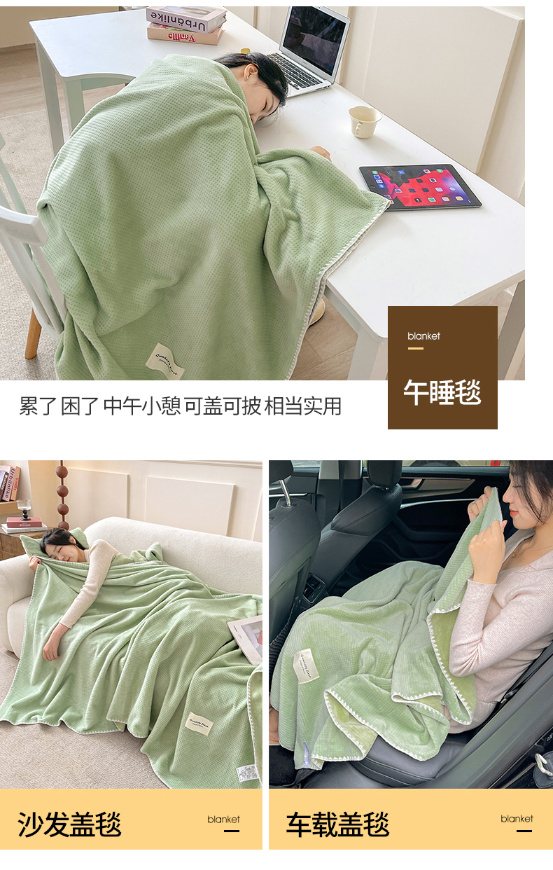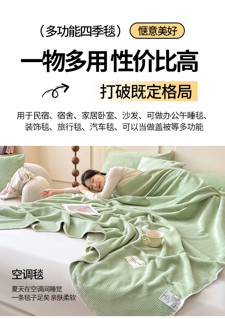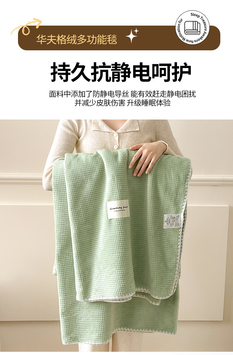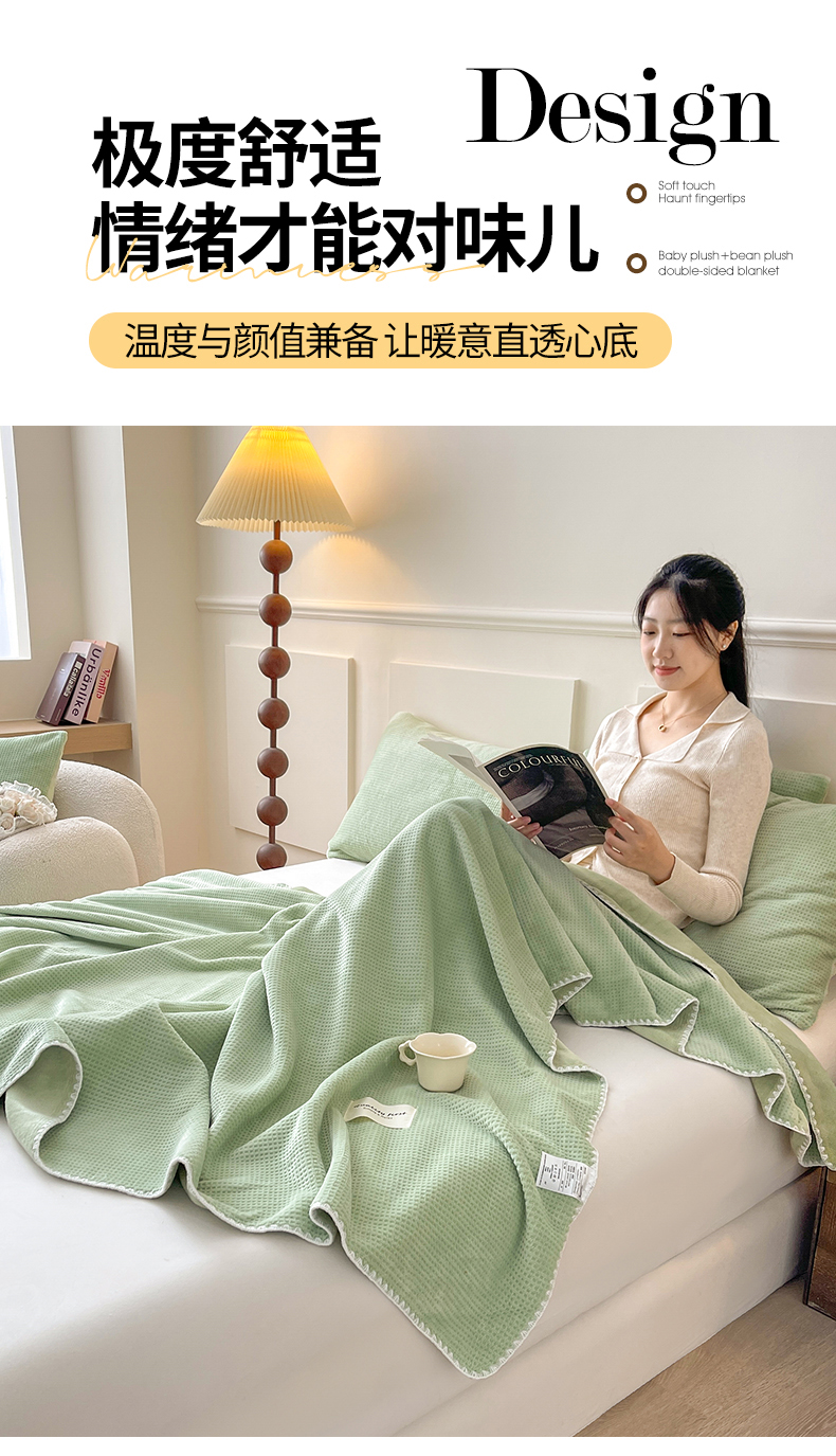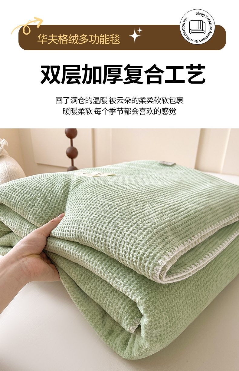 澳梵家居 2025新款华夫格绒四季毯毛毯 抹茶绿