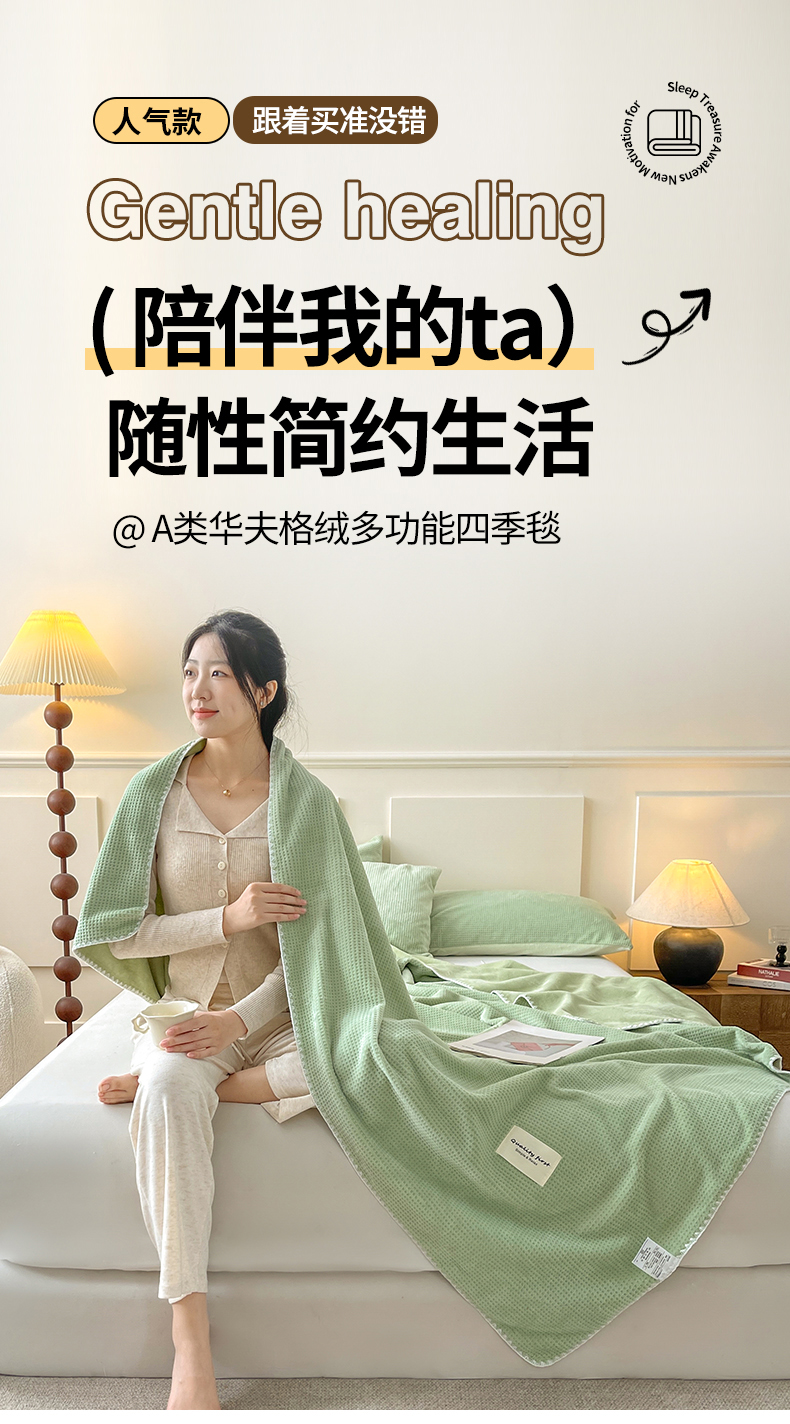 (总)澳梵家居 2025新款华夫格绒四季毯毛毯,香槟咖,焦糖色,抹茶绿,奶油黄,乳杏白,时光灰,组合图
