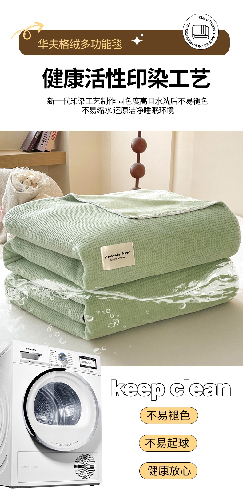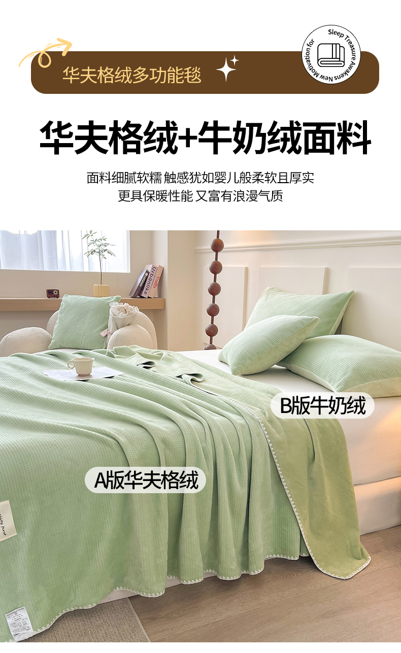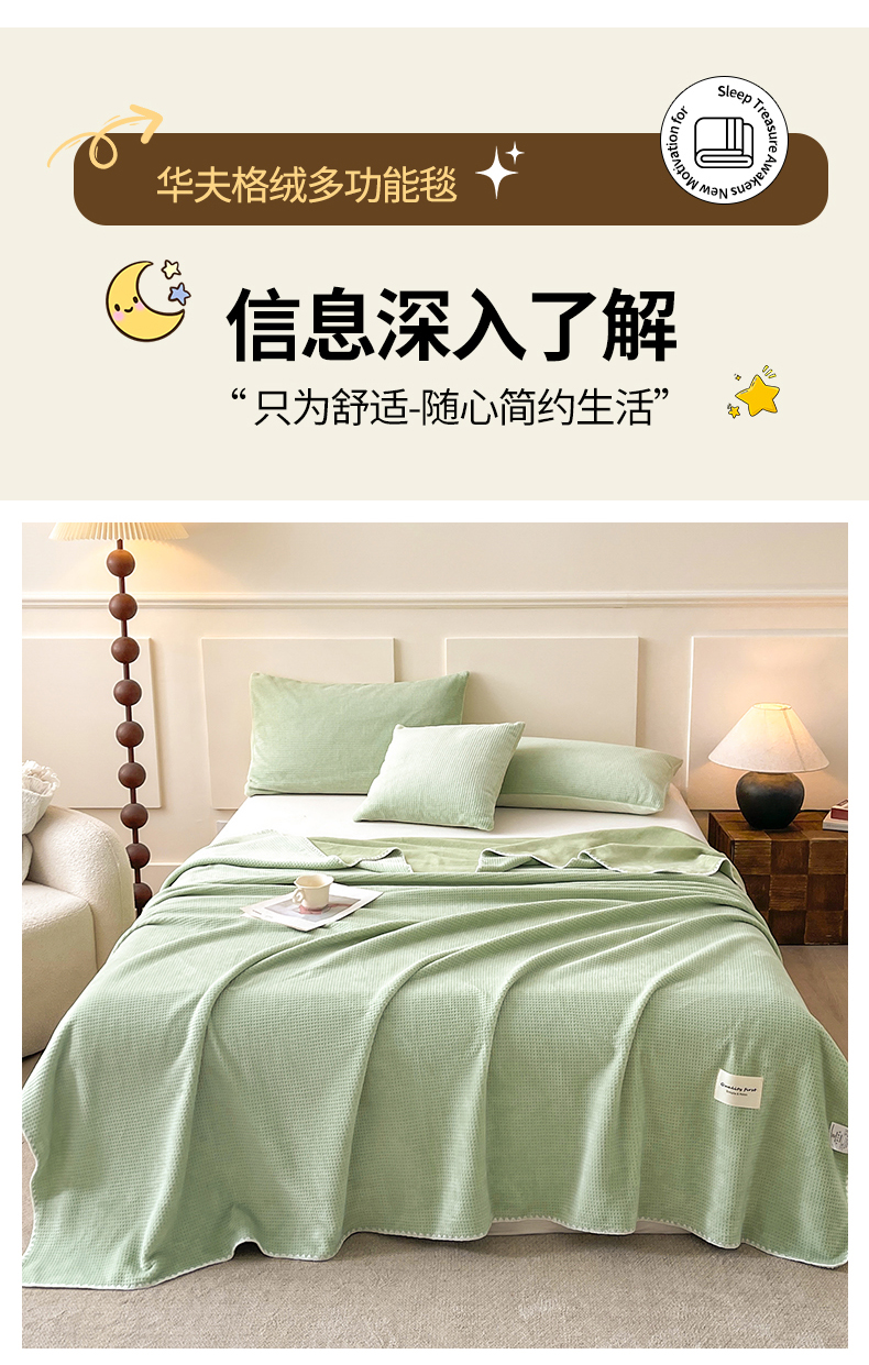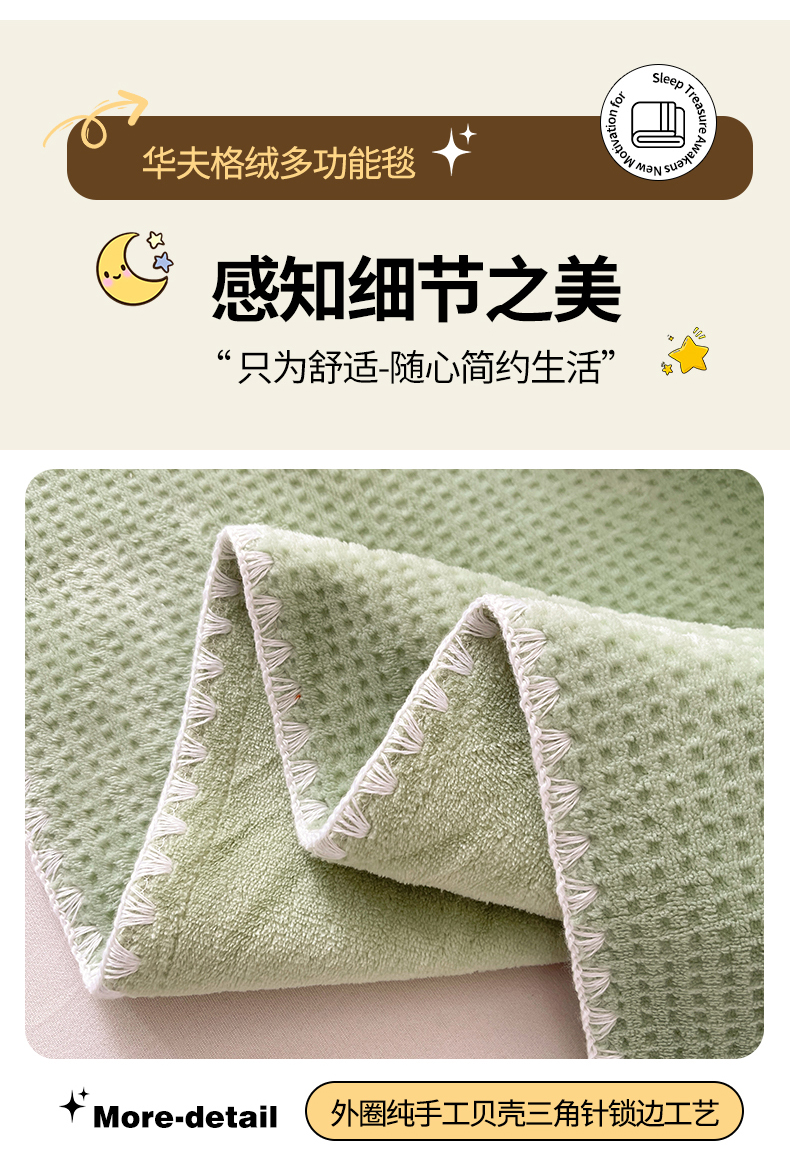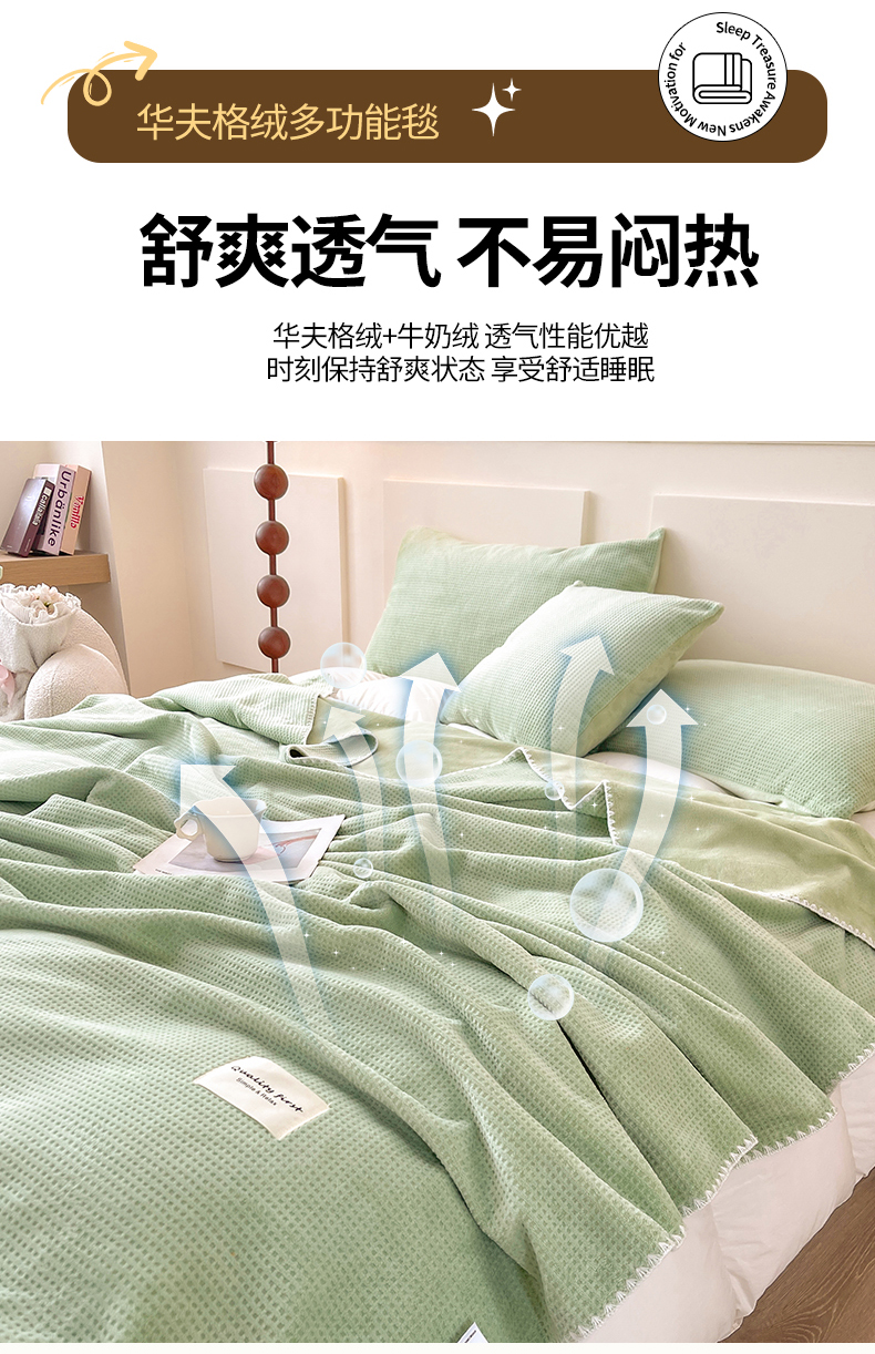 商品名称:澳梵家居 2025新款华夫格绒四季毯毛毯 抹茶绿