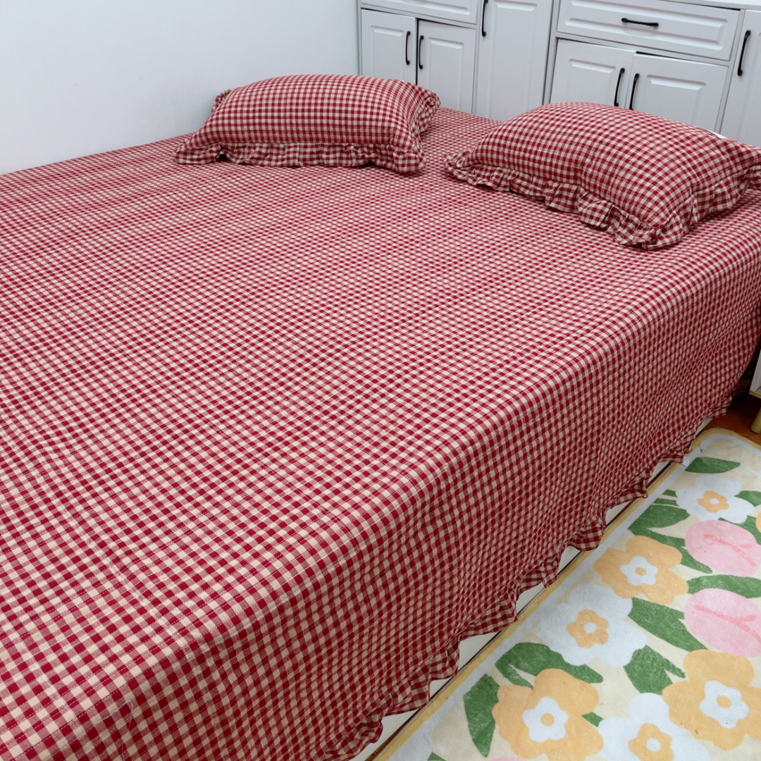 (总)暖居 2026年新款全棉色织水洗棉高温砂洗床盖三件套四件套,英式格纹,复古红,可可灰,纽约格红,森林咖,云曲