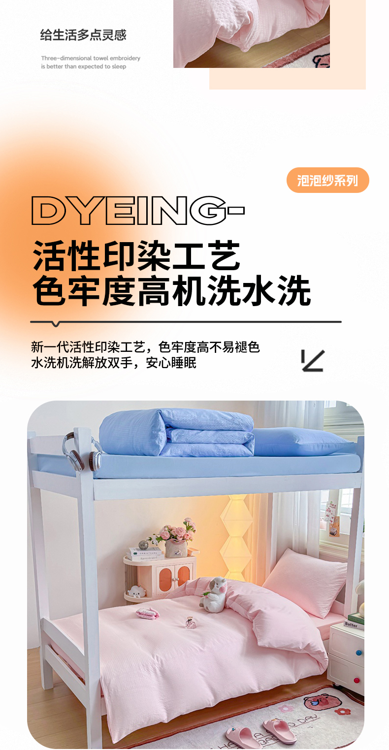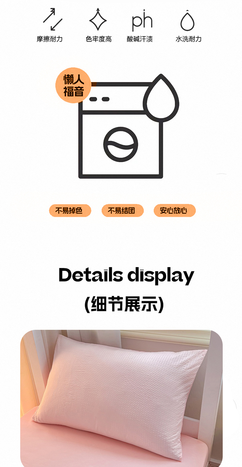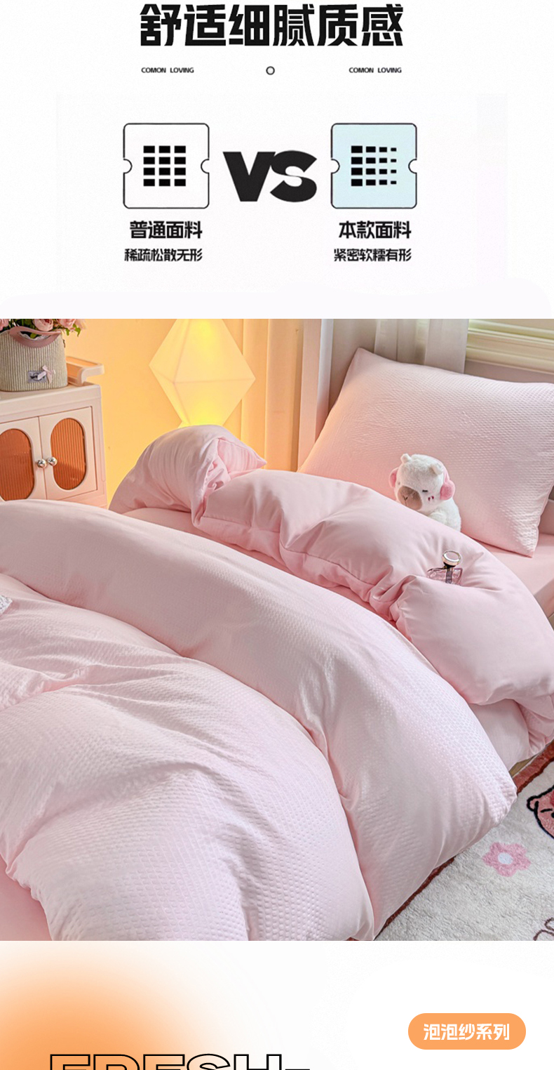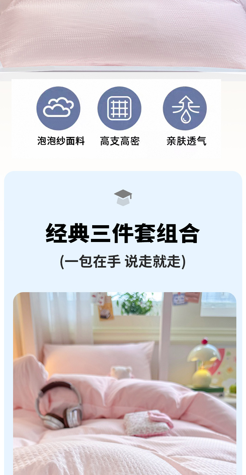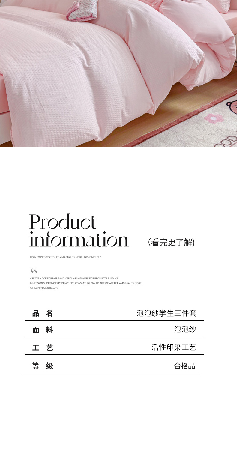 商品名称:麒东家纺 2025新款圆豆纱华夫格学生三件套 粉色