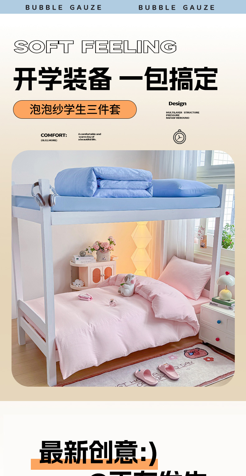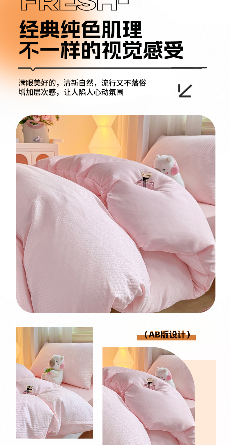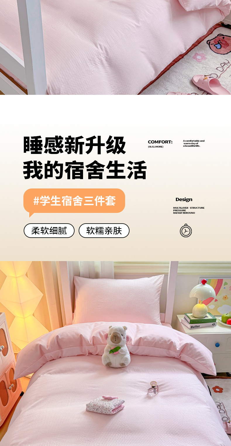 麒东家纺 2025新款圆豆纱华夫格学生三件套 粉色