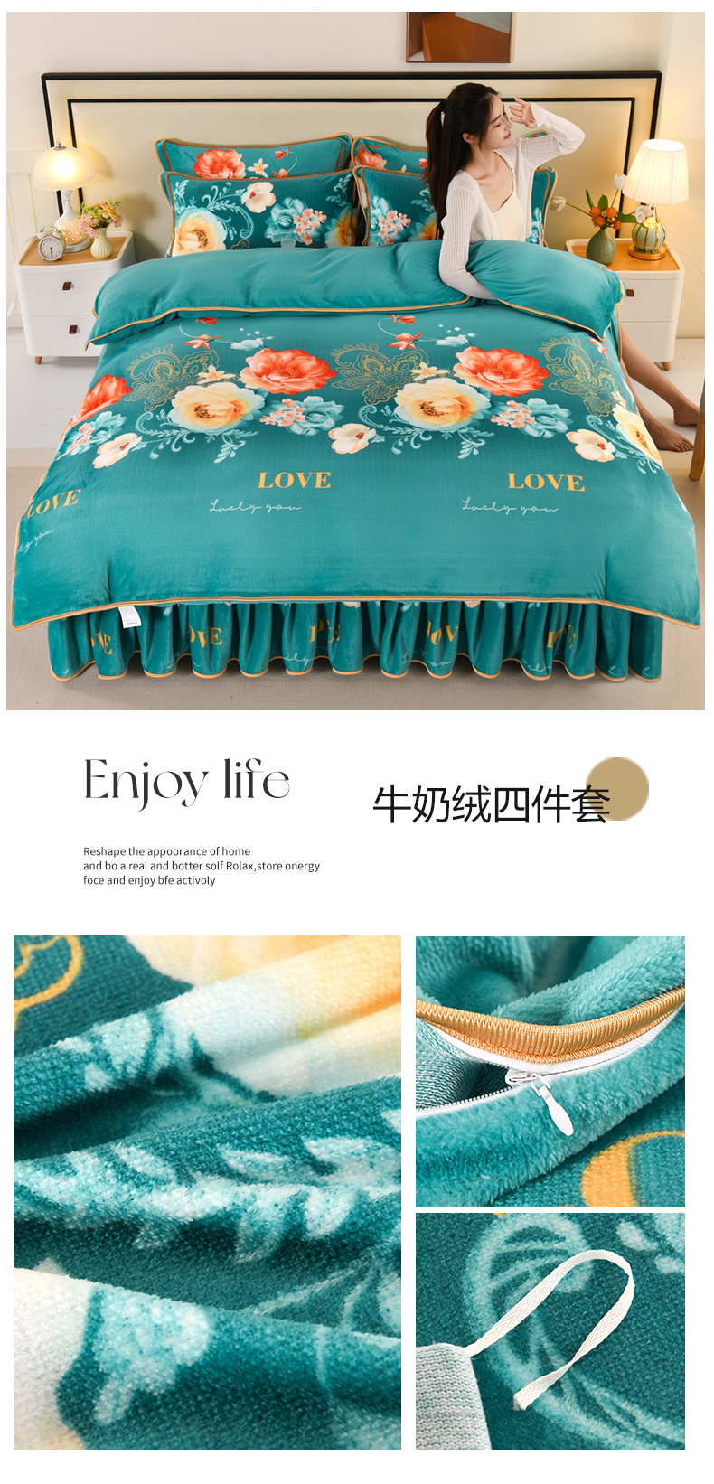 (总)绒品壹家 2025新款电商直播爆款高克重7斤牛奶绒金貂绒印花床裙款三件套四件套,爱心-绿,繁花似锦,粉色心情,福蝶纷菲,高雅人生,国色天香,鸿运当头,花的海洋,花落倾城,花颜,灰小格,简约生活,欧曼情调,轻奢艾玛,轻奢格调,喜结良缘,薰衣草,郁金香,爱心剑