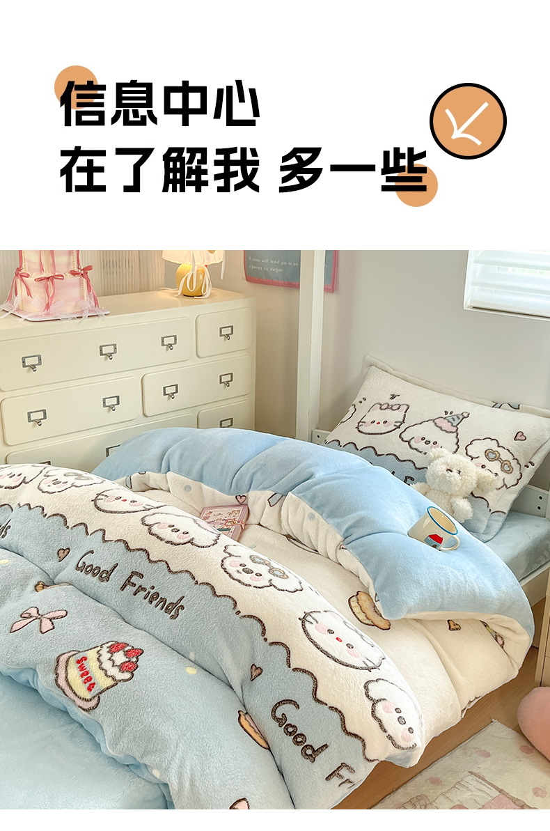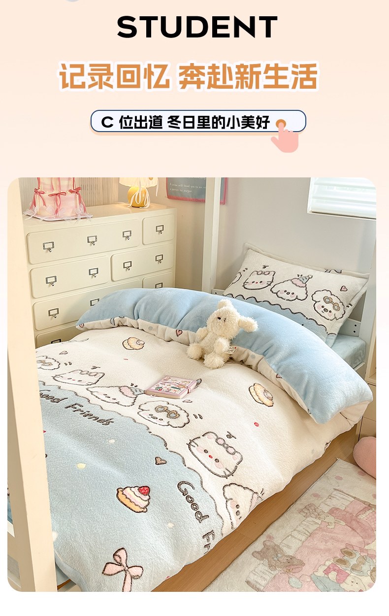 当前位置: 91家纺网 > 商品网购 > 床品套件 > 四件套 > 其它四件套 > 川悦生活 2025新款立体雪花绒印花四件套学生床系列二场景一 快乐派对
