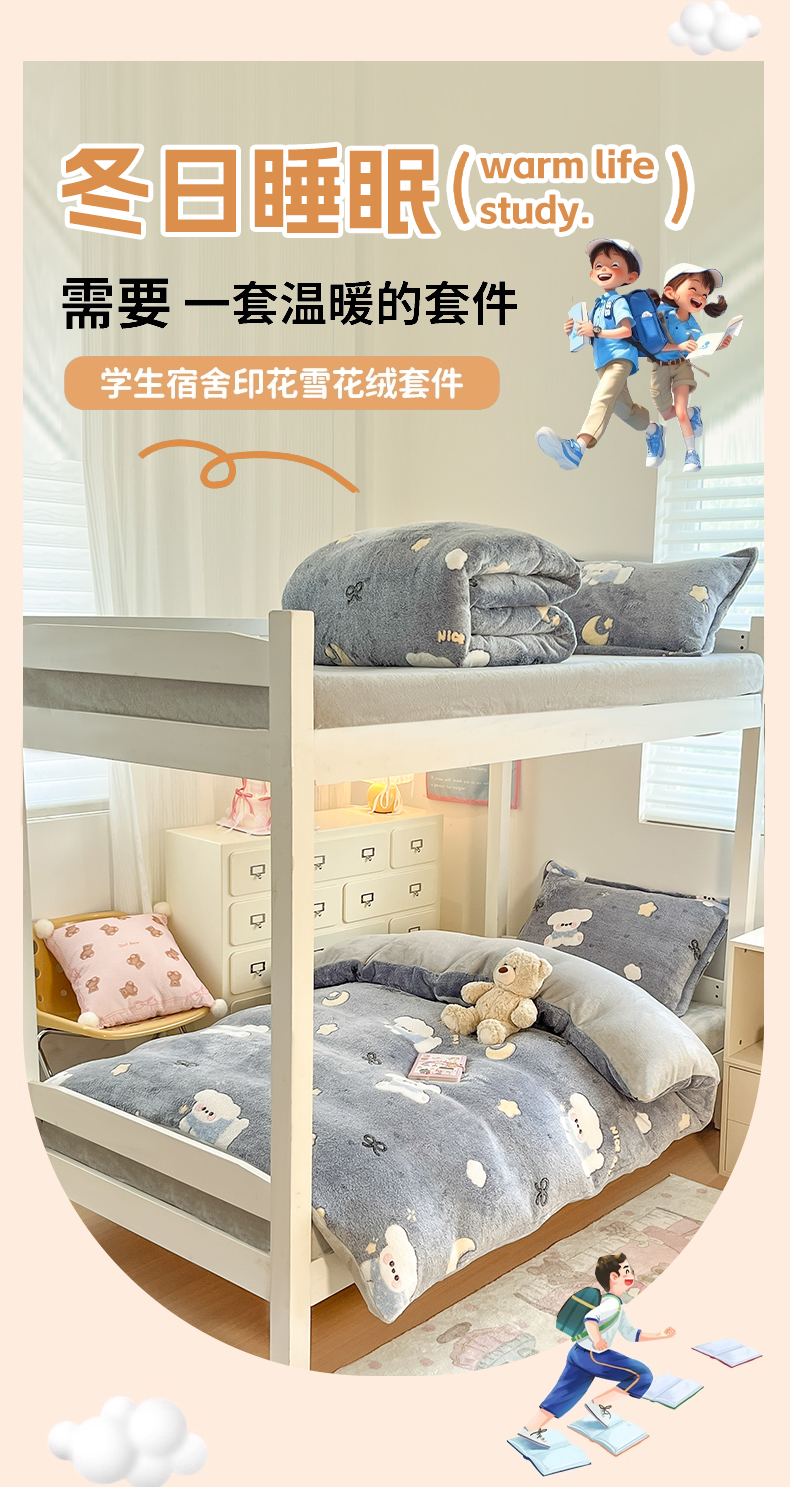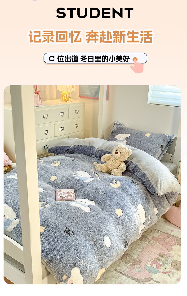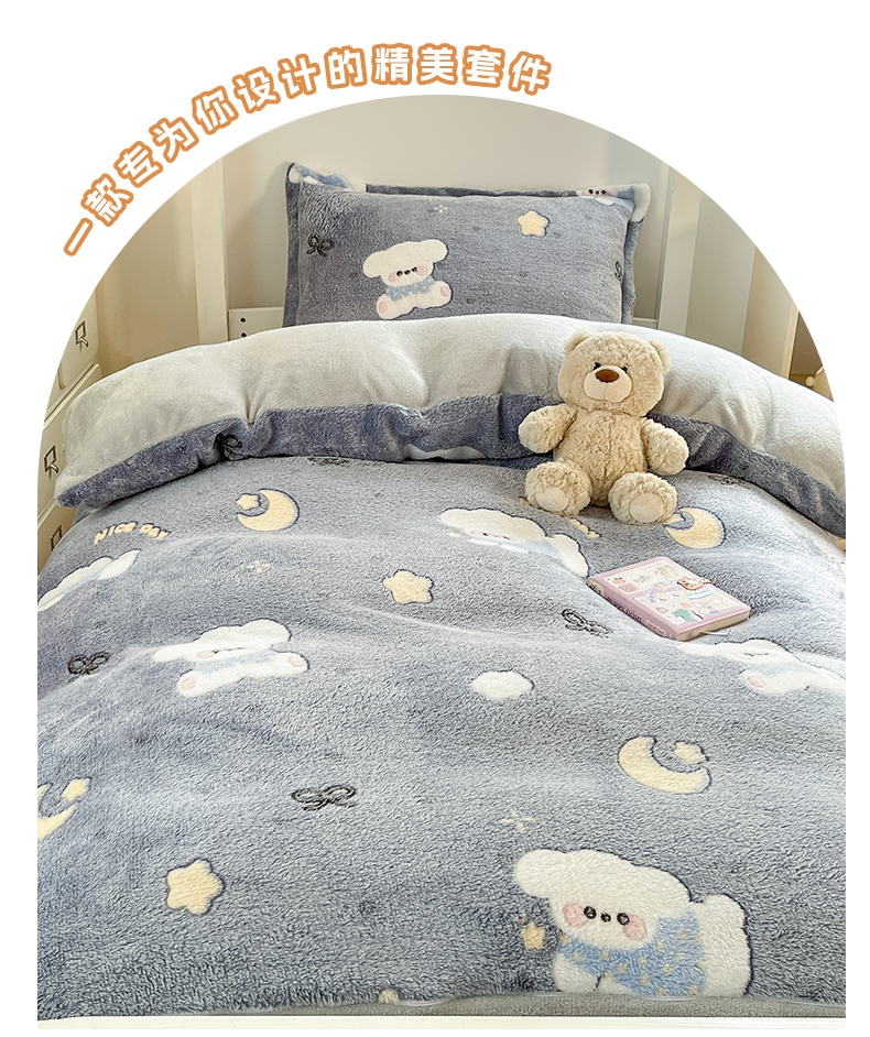 当前位置: 91家纺网 > 商品网购 > 床品套件 > 四件套 > 其它四件套 > 川悦生活 2025新款立体雪花绒印花四件套学生床系列二场景一 星月小狗-灰