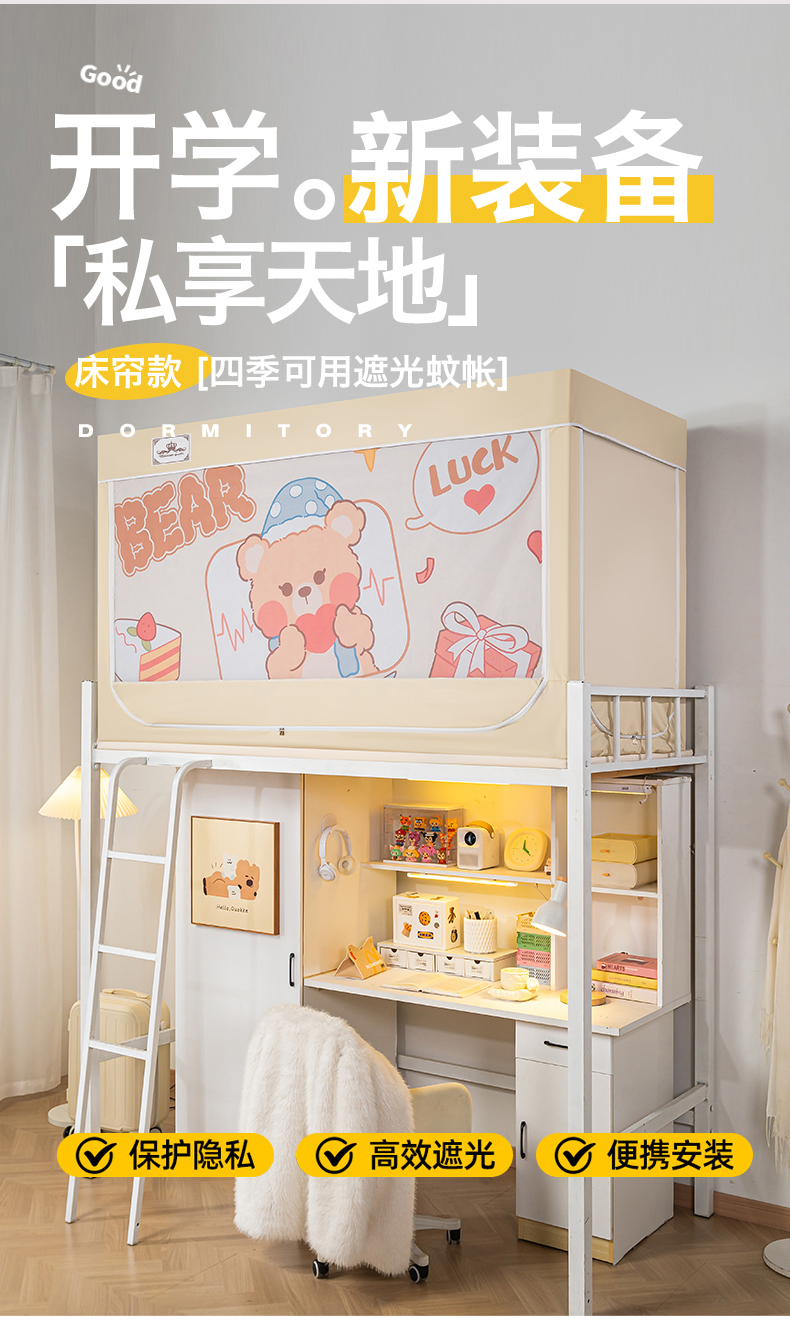 当前位置: 91家纺网 > 商品网购 > 床上用品 > 蚊帐 > 学生蚊帐 > 2025新款多层复合夹层强遮光学生蚊帐 晚安小熊