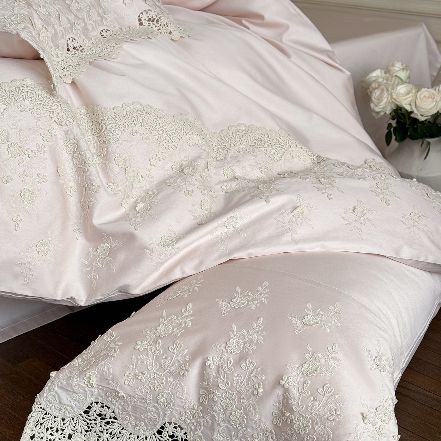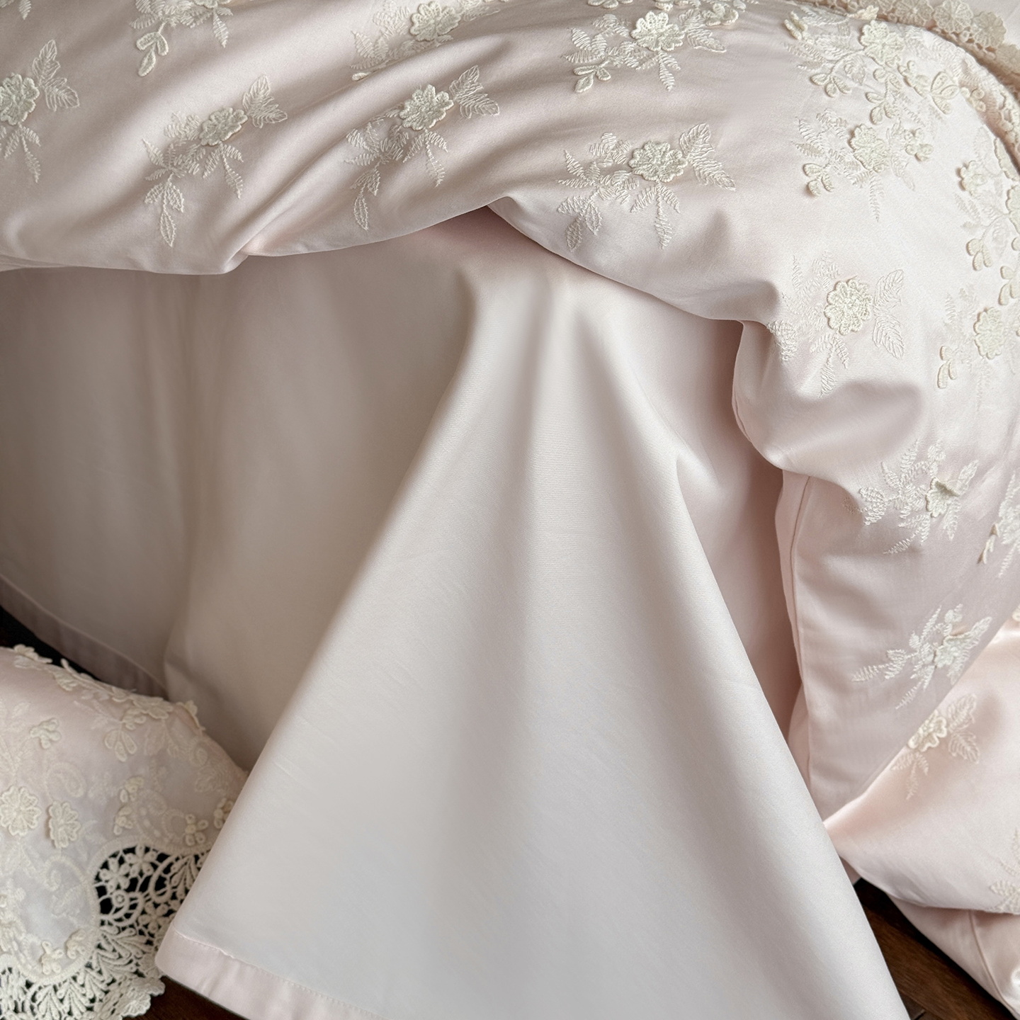 商品名称:佳汐蓝家纺 2025新款100支澳棉花边四件套-花拾光 花拾光-粉色