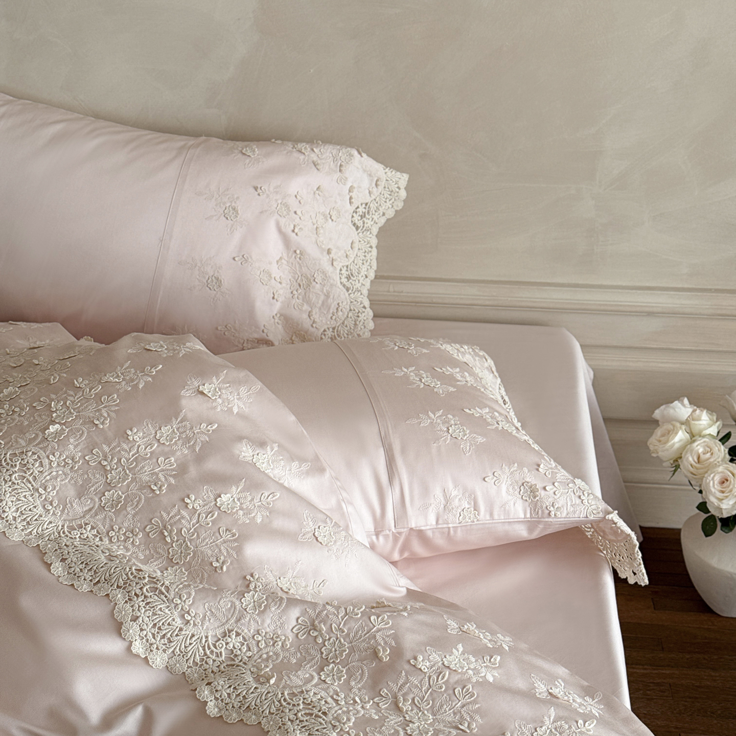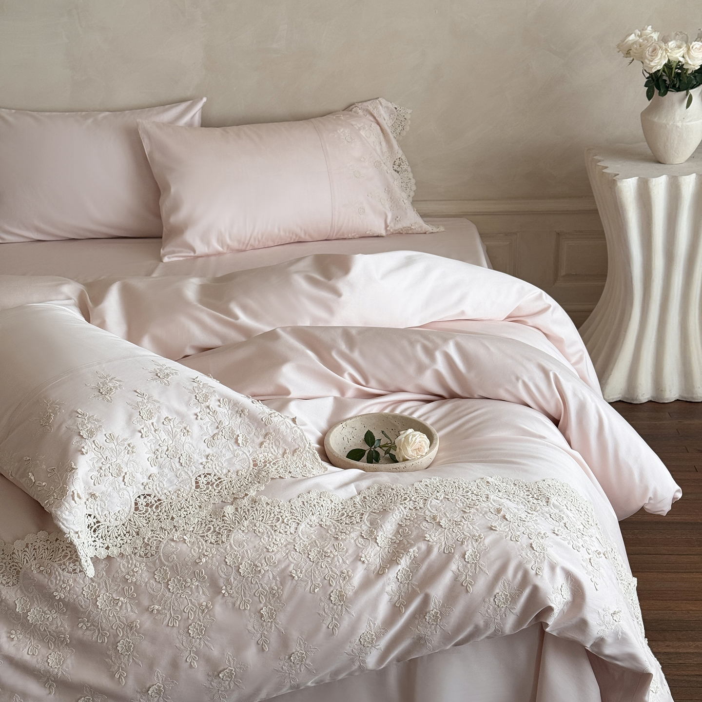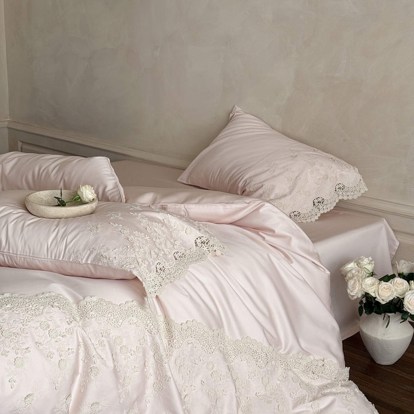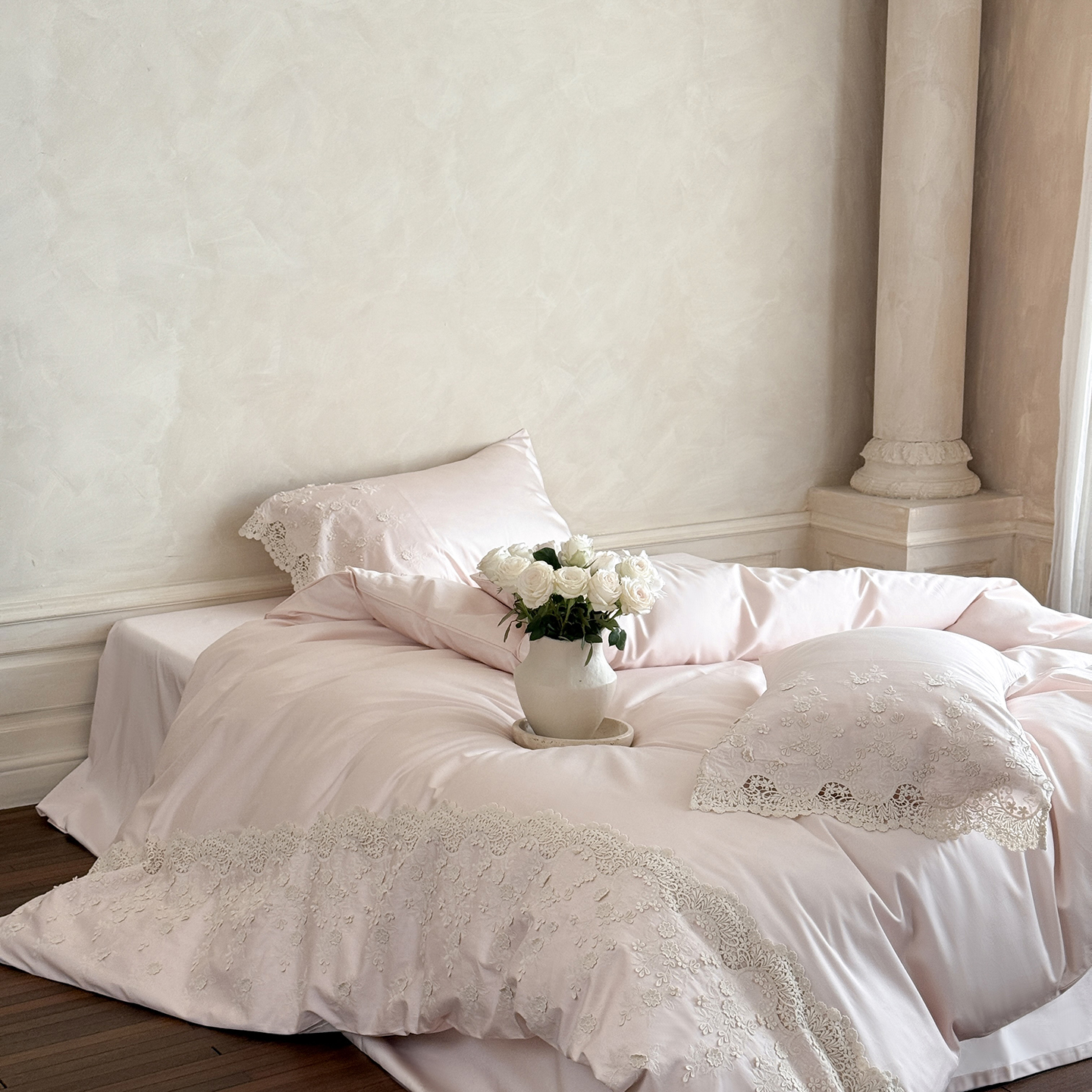 佳汐蓝家纺 2025新款100支澳棉花边四件套-花拾光 花拾光-粉色