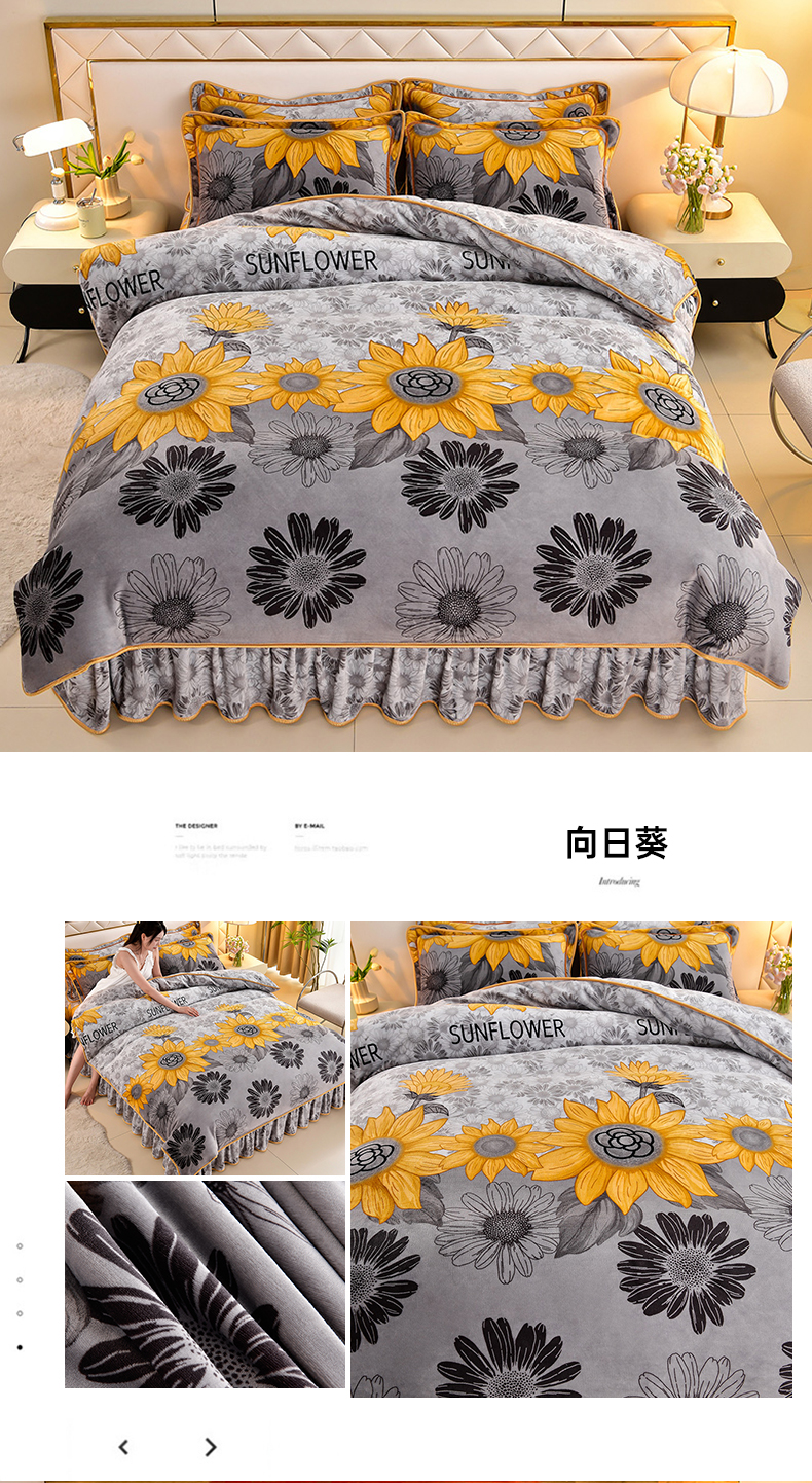 商品名称:馨梦缘 2025直播爆款8.5斤牛奶绒四件套加厚保暖床裙金貂绒 向日葵