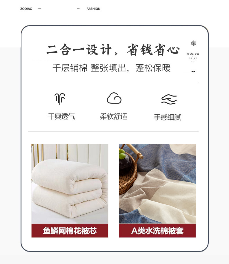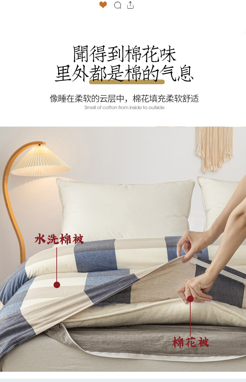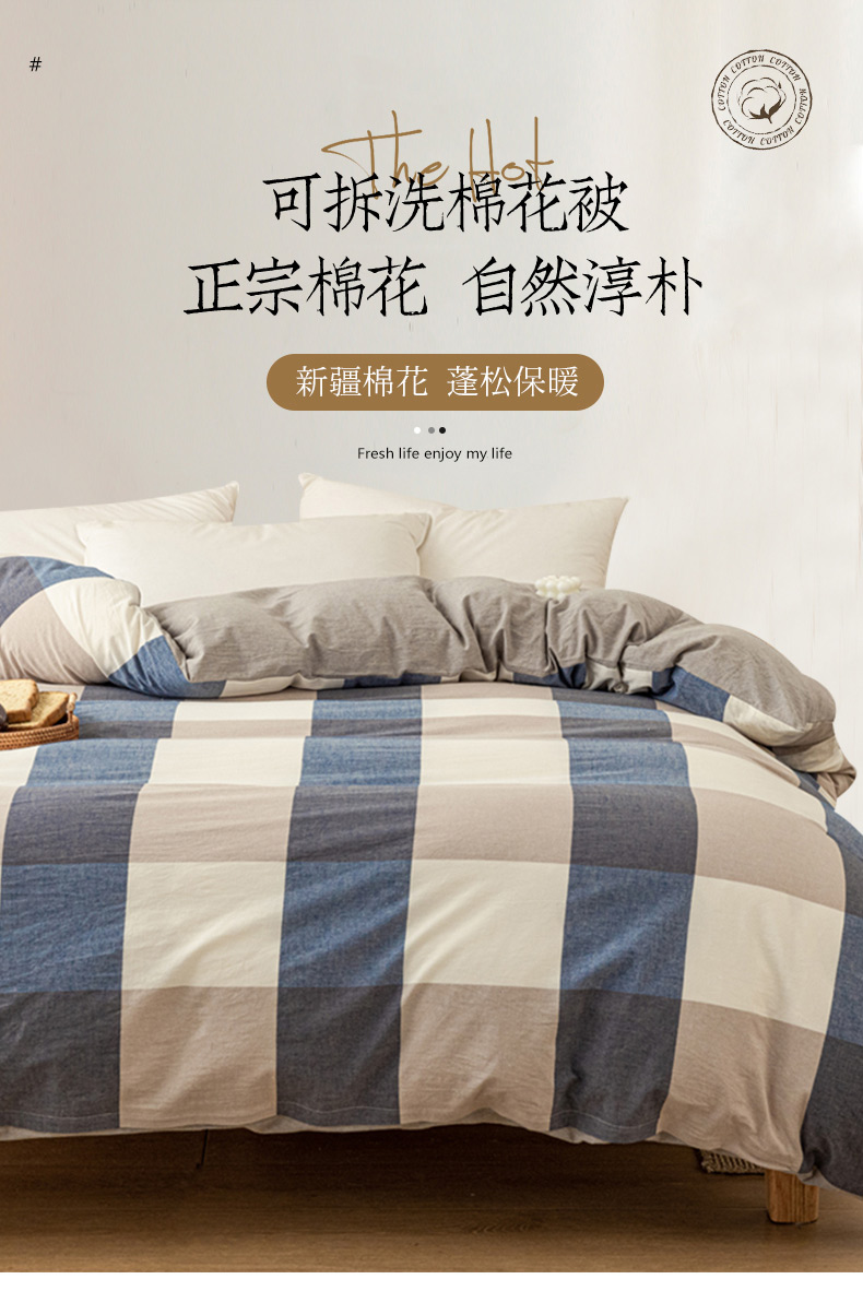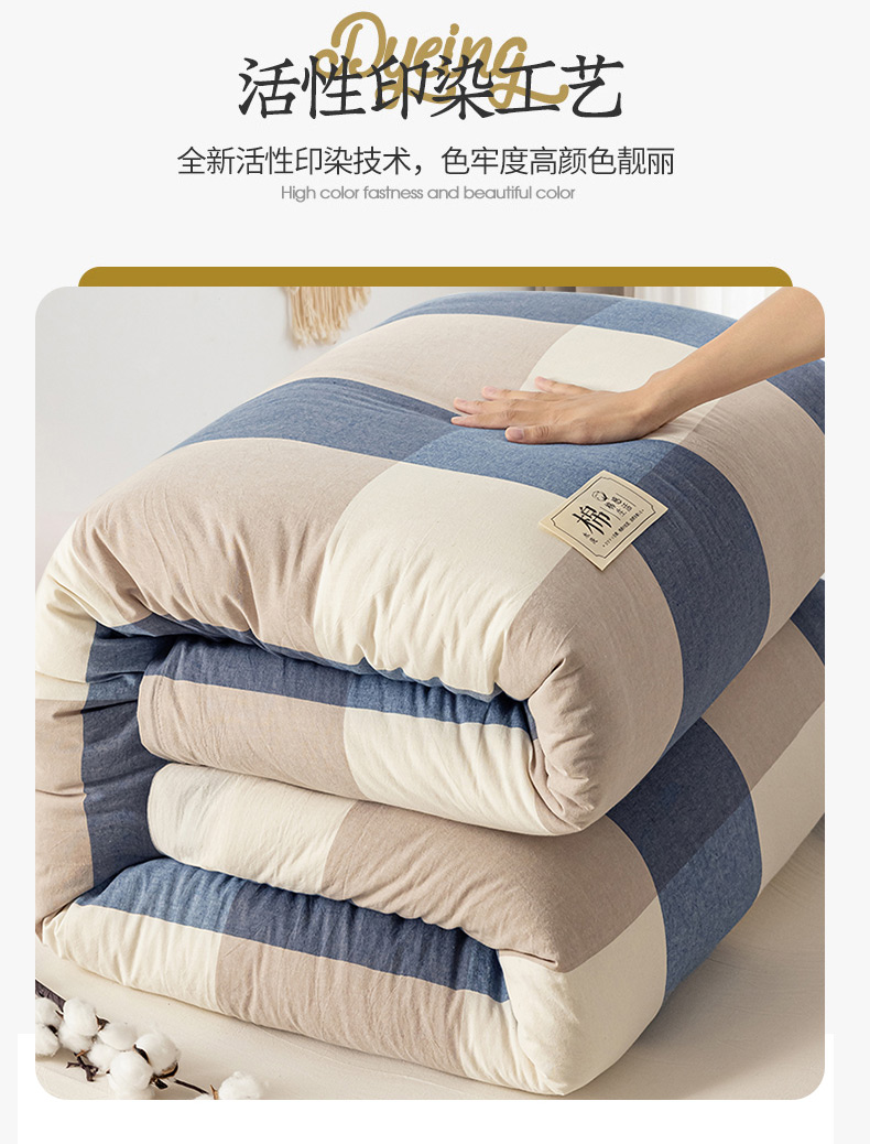 • 91家纺网 家纺一手货源 找家纺 悠米悠家 2025新款蓬松保暖可拆洗新疆棉花被子被芯 蓝大格