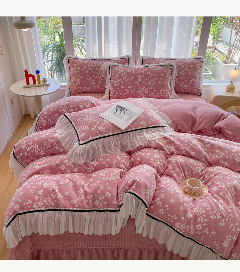 (总)恋尚羽家纺 2025新款韩版花边婴儿绒绣花大床裙四件套宝宝绒婴肤绒公主风韩式,大红色,豆沙色,粉色,湖蓝色,灰色,桔色,墨绿色,紫色