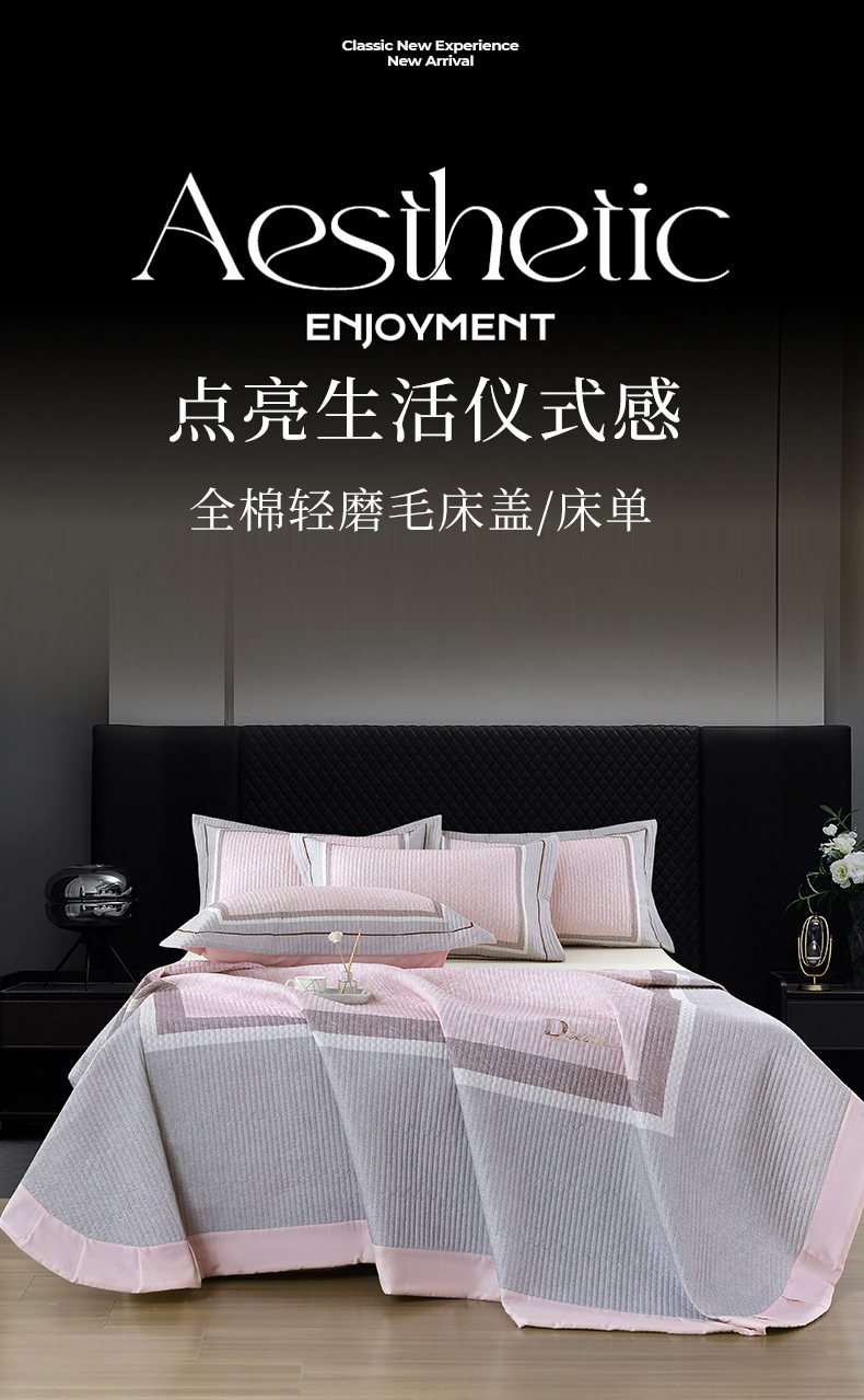 OL家纺 2025新款亲肤全棉磨毛单品系列四件套 曼蒂-粉