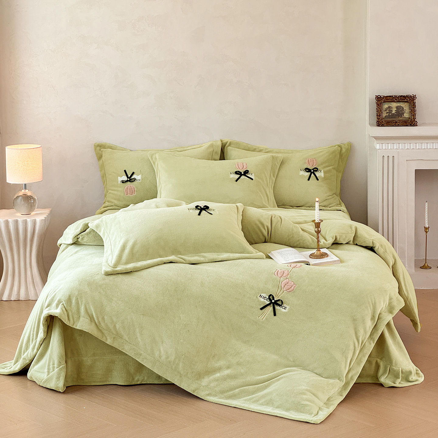 (总)恋尚羽家纺 2025秋冬热款刺绣牛奶绒四件套-郁金香,郁金香-豆沙,郁金香-粉玉,郁金香-灰色,郁金香-紫色