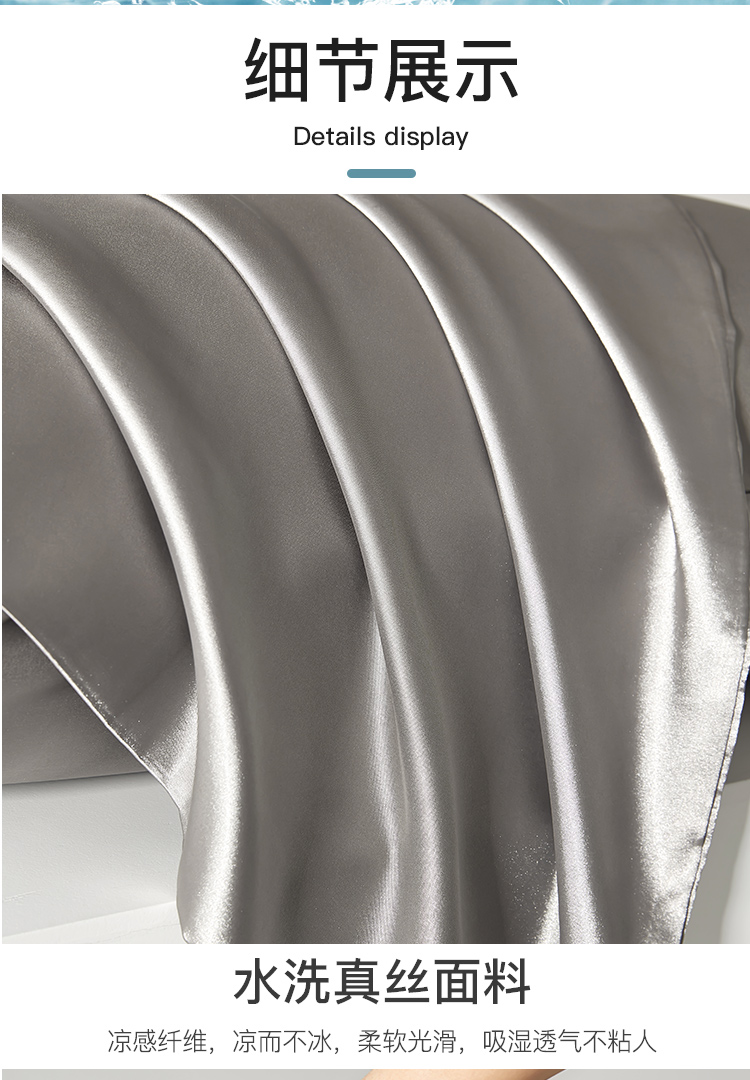 商品名称:丰淘家纺 2025新款亲肤柔软水洗真丝纯色枕套 真丝银蓝