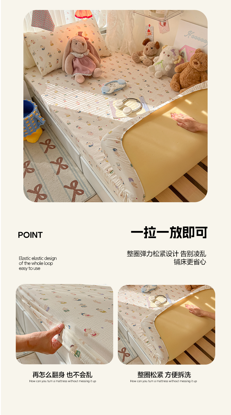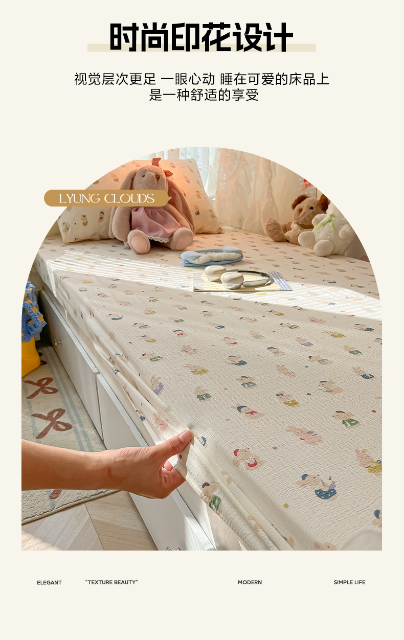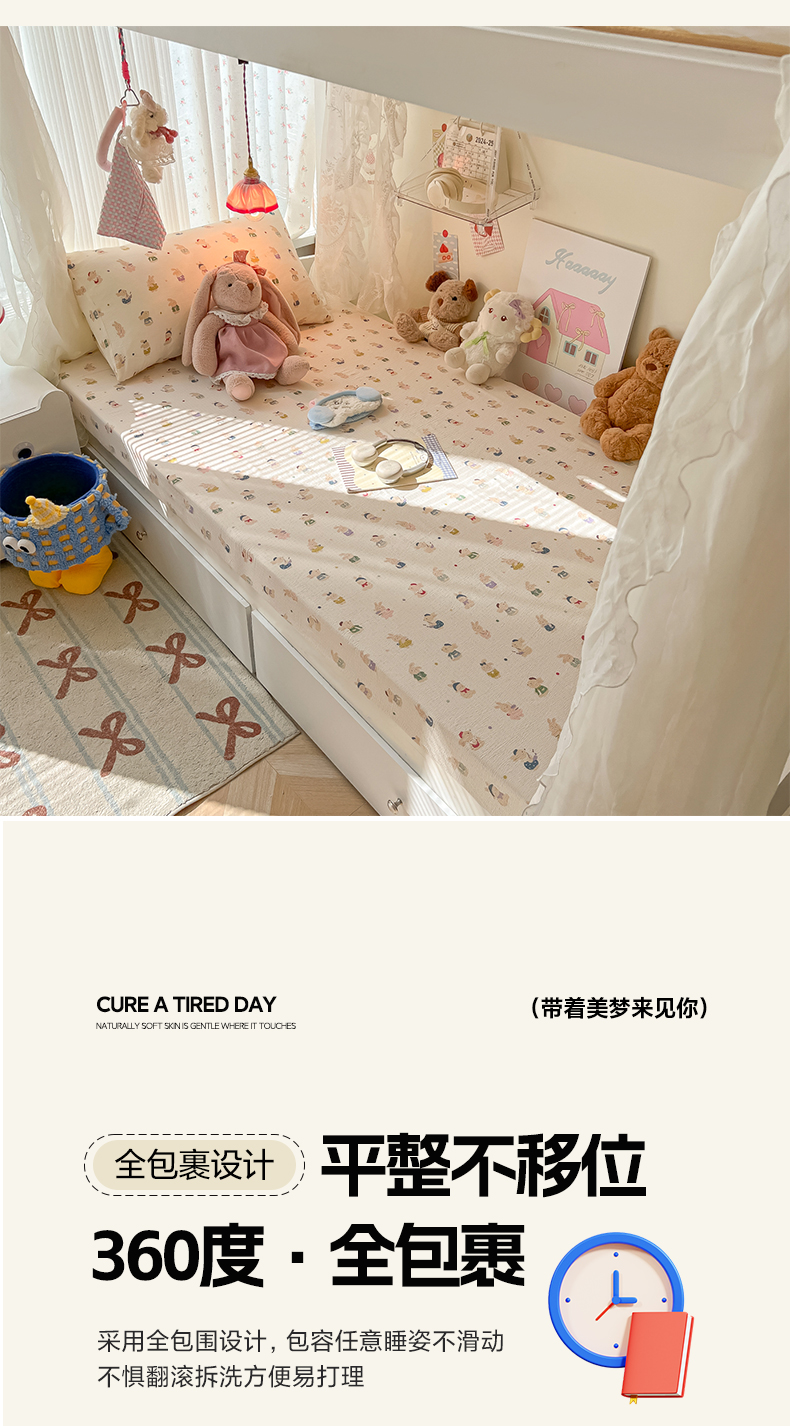 • 91家纺网 家纺一手货源 找家纺 韩巢家纺 2025新款A类学生宿舍上下铺床笠单件床垫保护罩枕套三件套 兔子集合