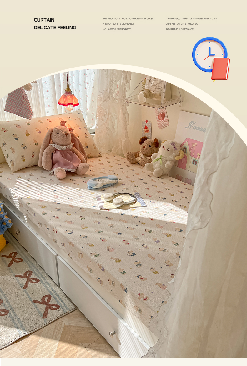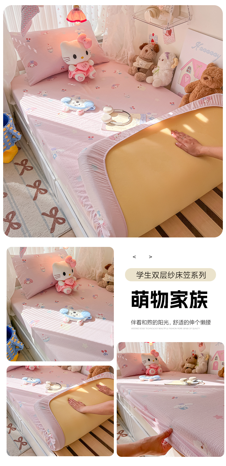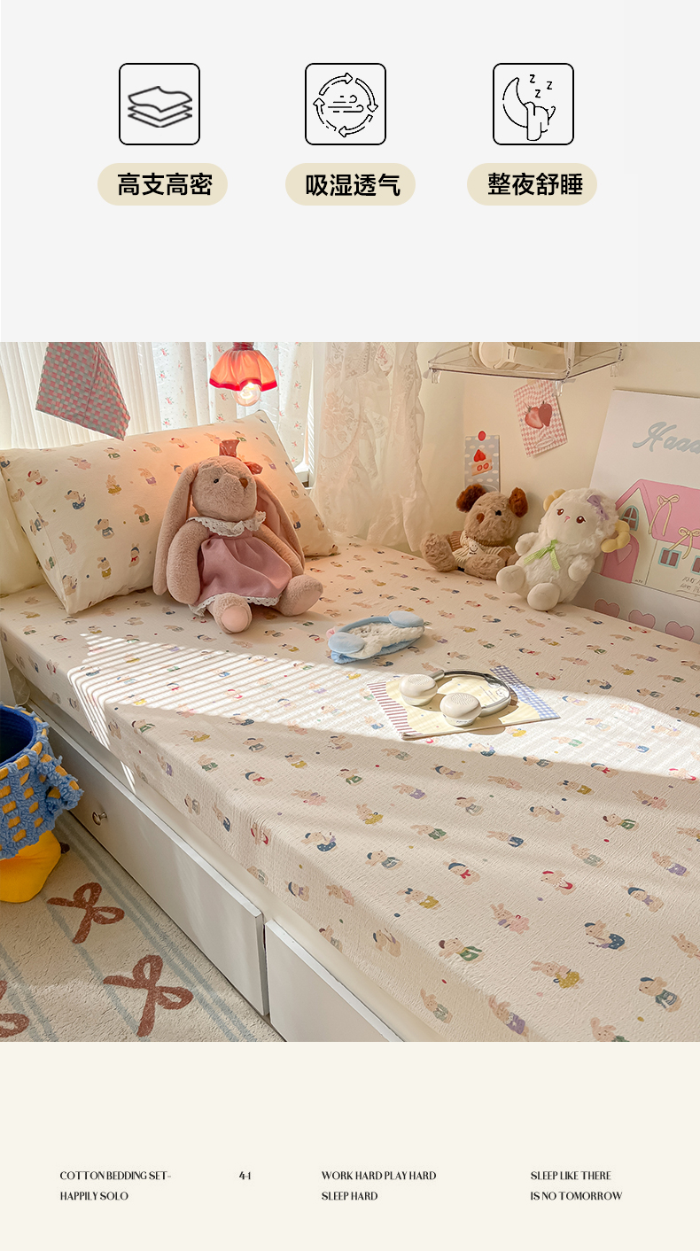 韩巢家纺 2025新款A类学生宿舍上下铺床笠单件床垫保护罩枕套三件套 兔子集合