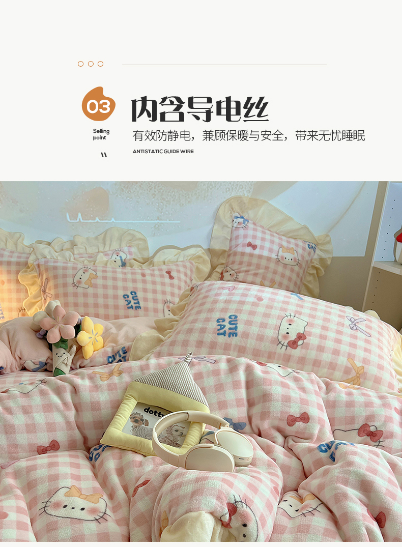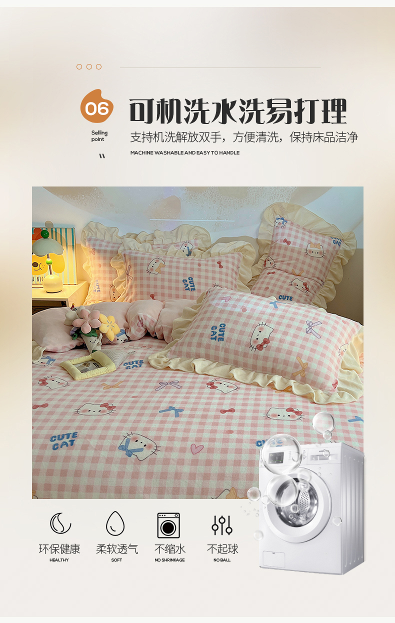 当前位置: 91家纺网 > 商品网购 > 床品套件 > 四件套 > 牛奶绒四件套 > 桃子家居 2025新款A类ins韩版花边少女心可爱卡通碎花加厚牛奶绒四件套 绒-花边可可猫咪粉