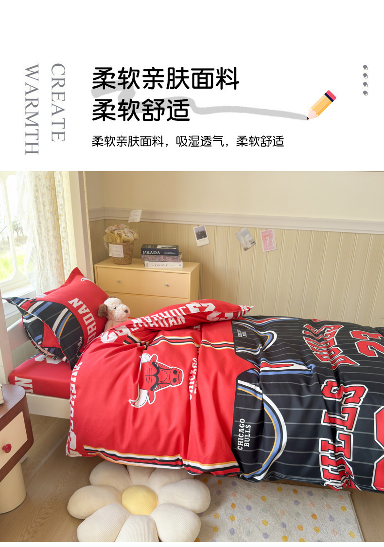 当前位置: 91家纺网 > 商品网购 > 床品套件 > 四件套 > 其它四件套 > 乐居坊 2025新款开学季亲肤棉透气印花芦荟棉四件套(宿舍床) 篮球之神-客