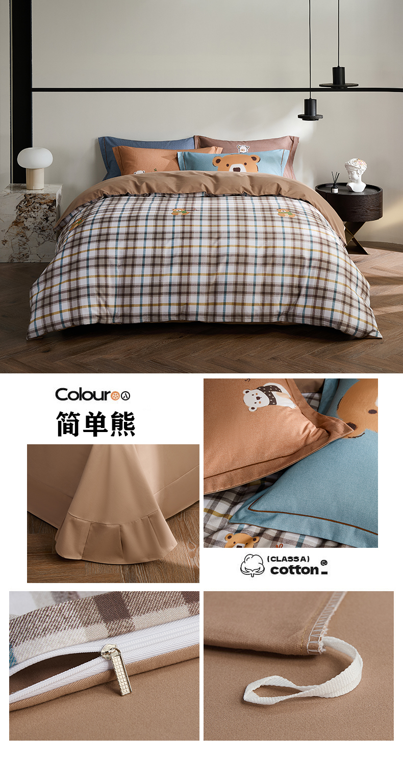 薏思家纺 2025新款全棉纯棉活性生态磨毛数码印花四件套-条格卡通类 简单熊