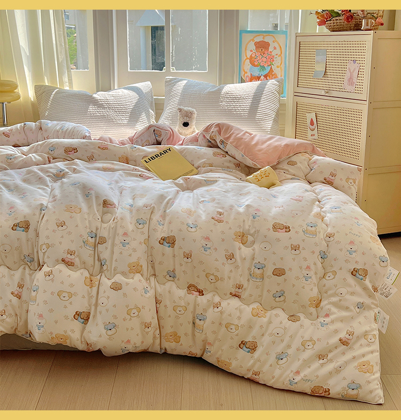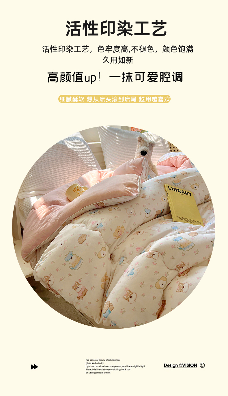 (总)华誉 2025新款牛奶绒四件套,宠物日记,蝴蝶结小猫,调皮狗