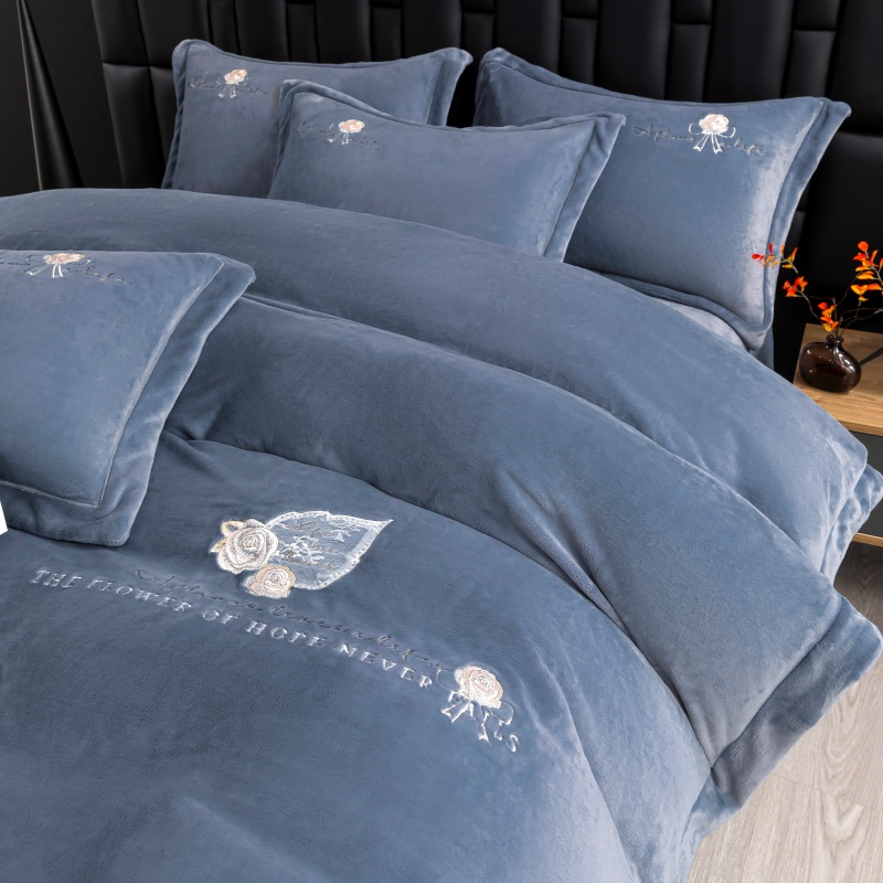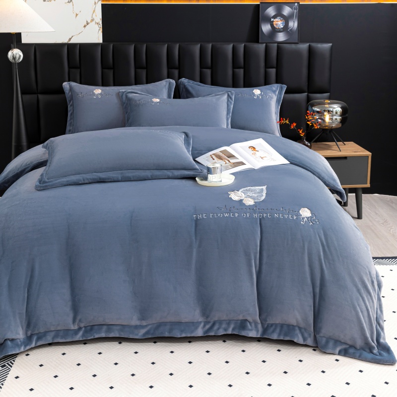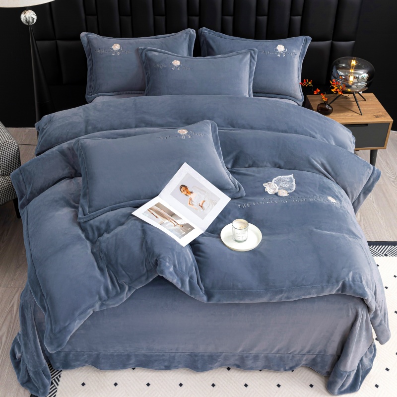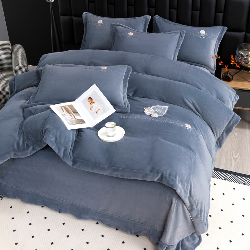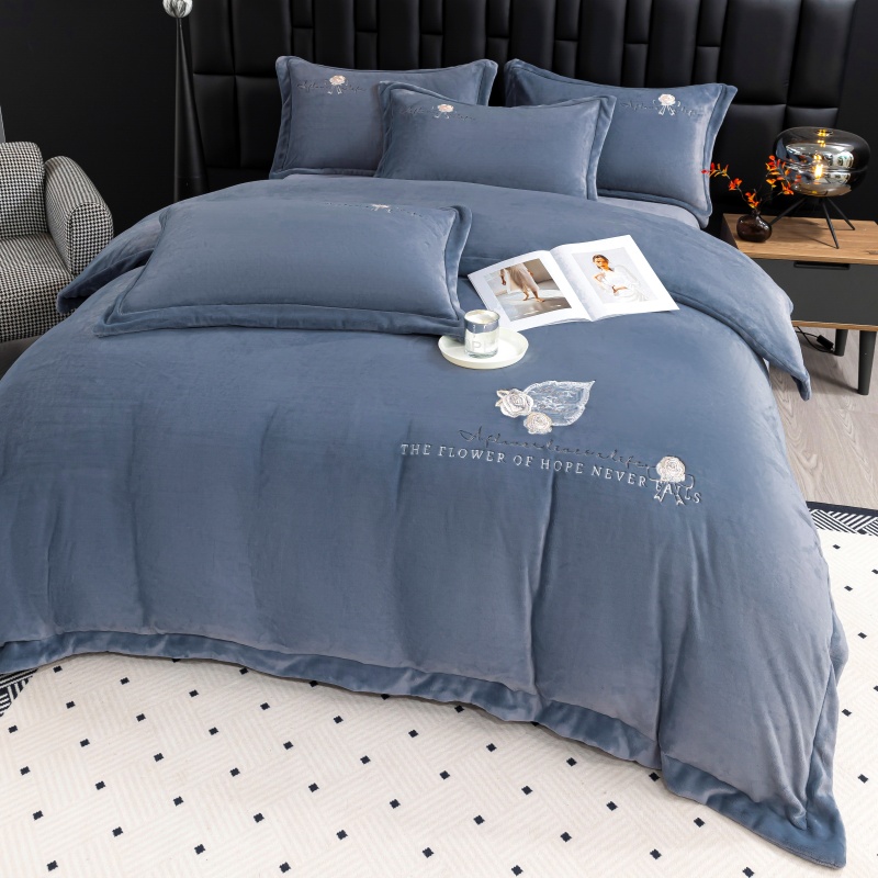 商品名称:优姿家纺 2025新款300克全消光牛奶蛋白蚕丝绒四件套 凯丽-深灰