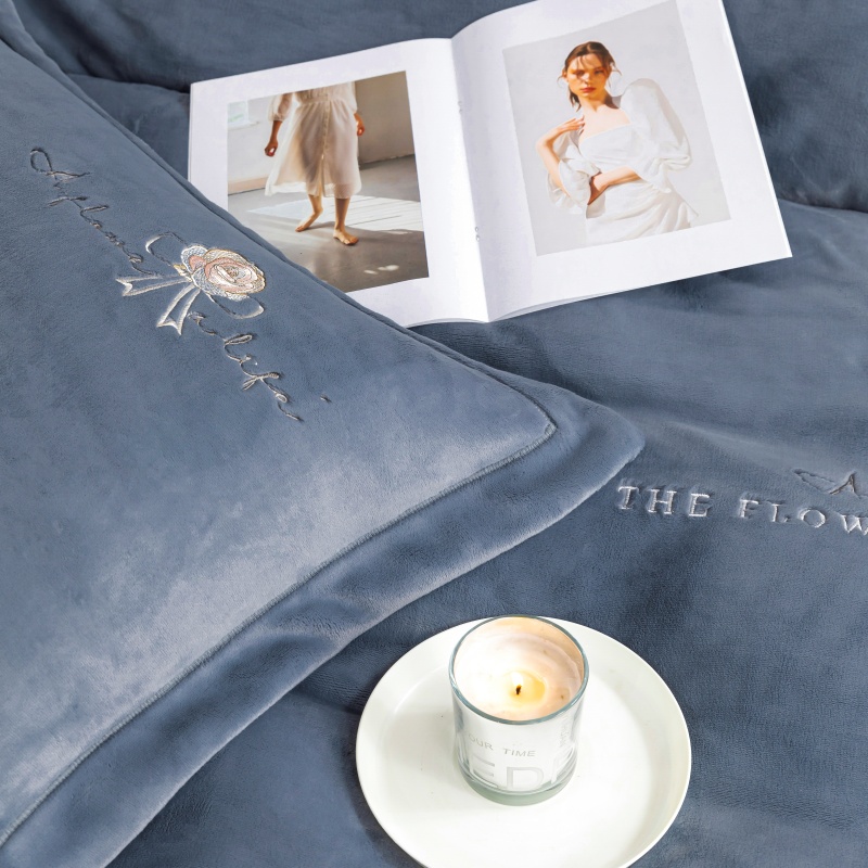 优姿家纺 2025新款300克全消光牛奶蛋白蚕丝绒四件套 凯丽-深灰