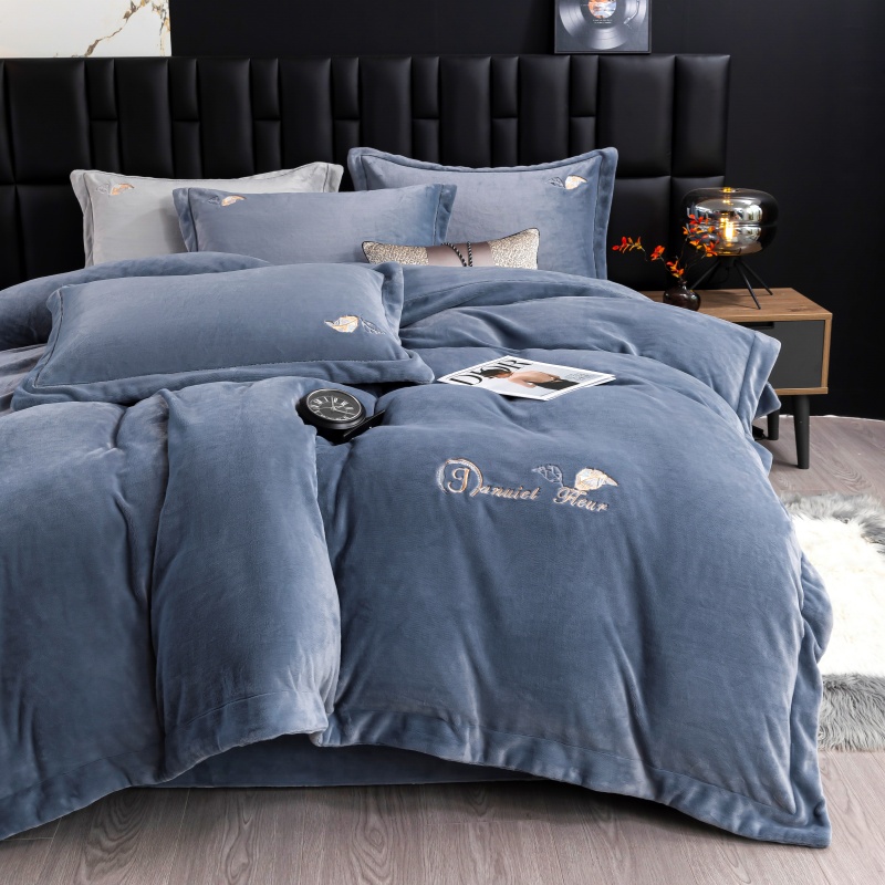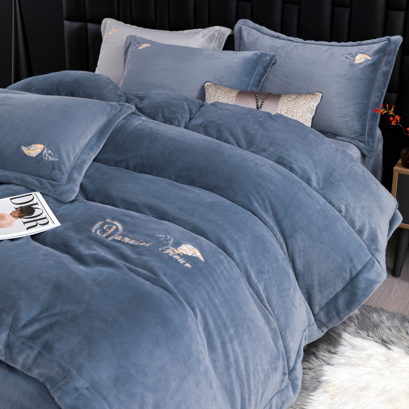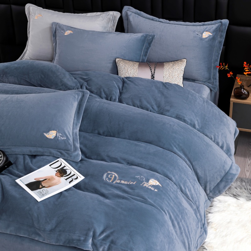 商品名称:优姿家纺 2025新款300克全消光牛奶蛋白蚕丝绒四件套 伊琳娜-深灰