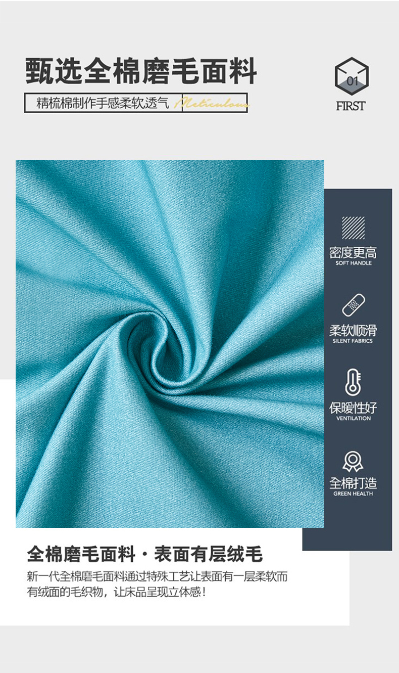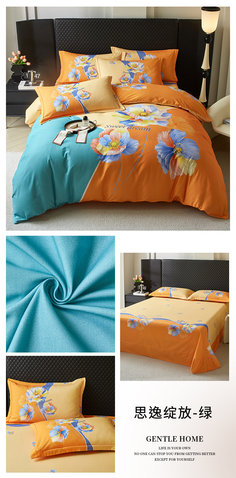 商品名称:金纱玉纺 2025年新款秋冬全棉印花四件套 思逸绽放-绿