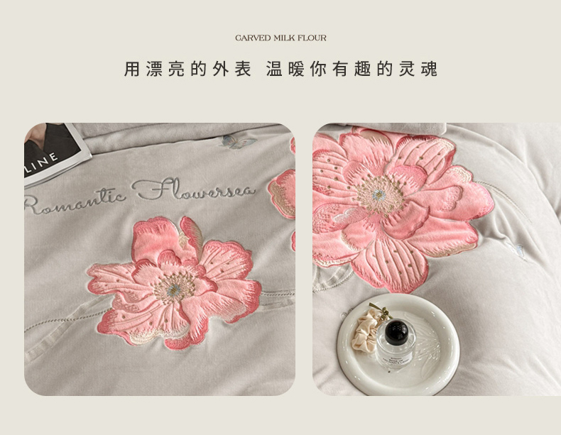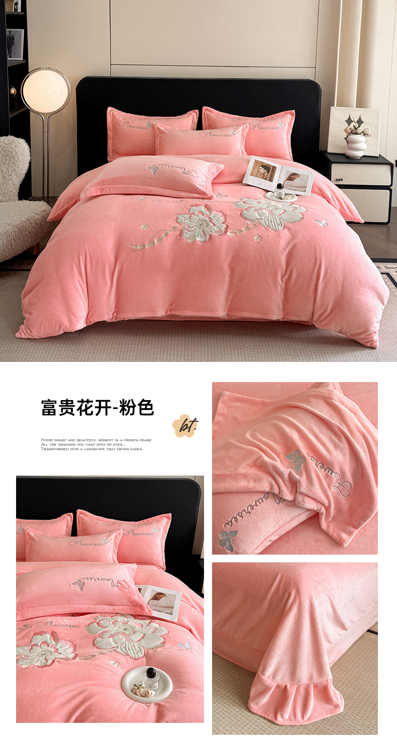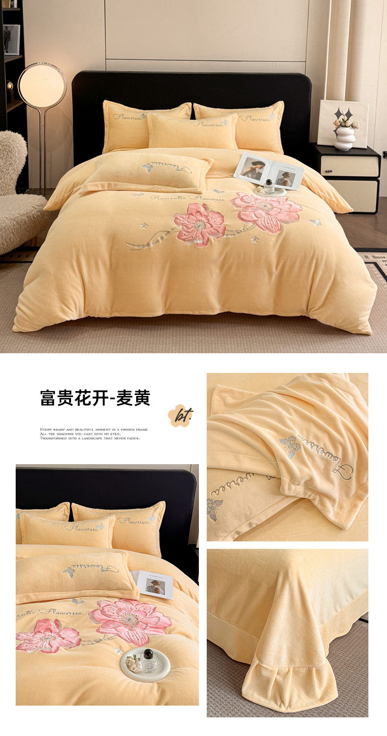 (总)喜梦缘家纺 2025新款大版贴布绣牛奶绒四件套,富贵花开-粉色,富贵花开-红豆沙,富贵花开-灰,富贵花开-橘色,富贵花开-麦黄,富贵花开-米杏,富贵花开-天空蓝,富贵花开-熏衣紫,富贵花开-玉色