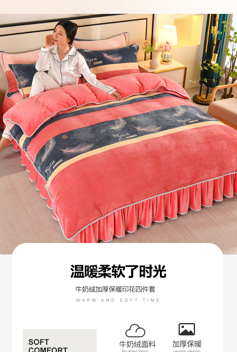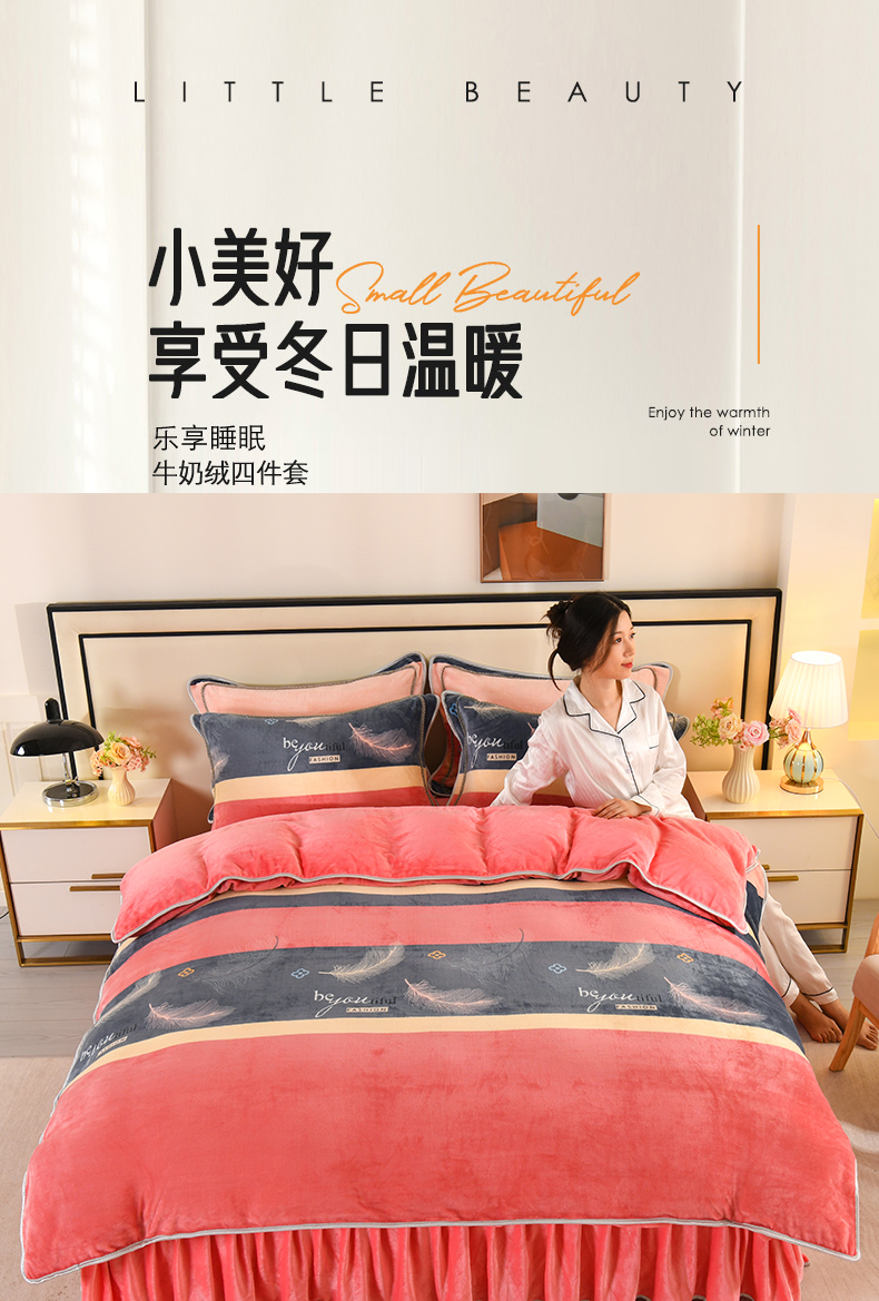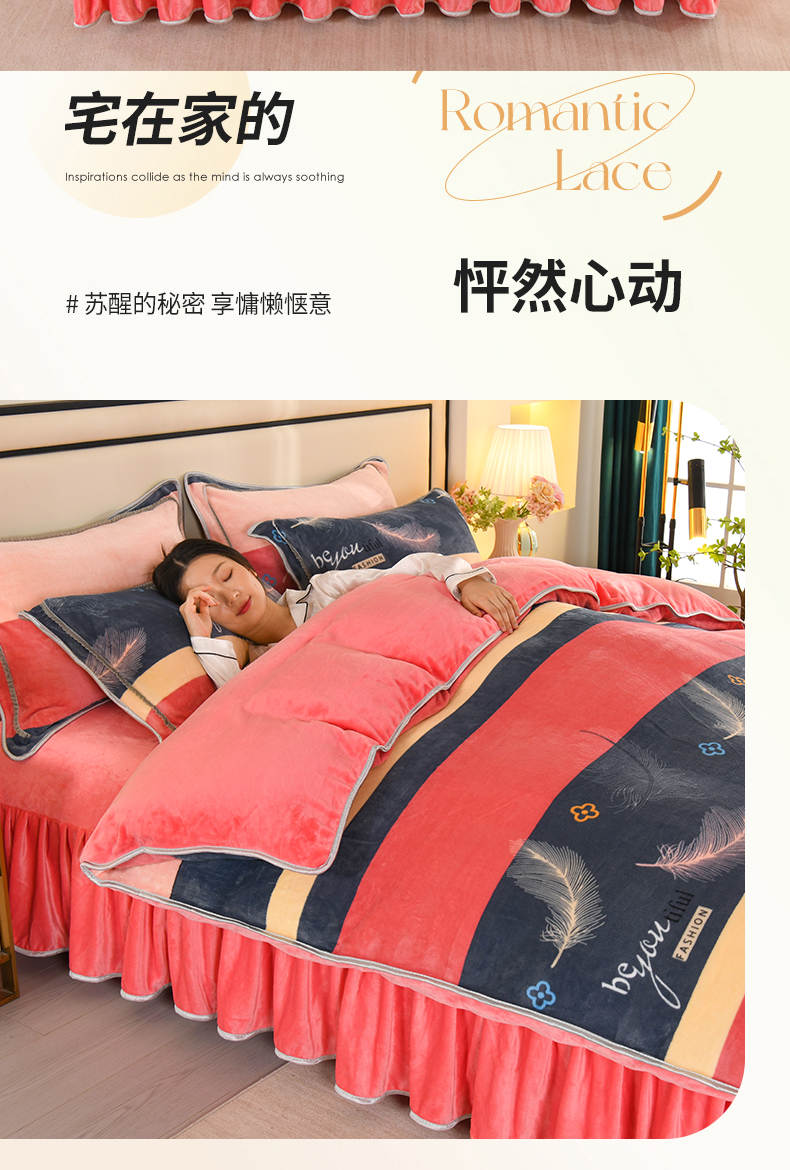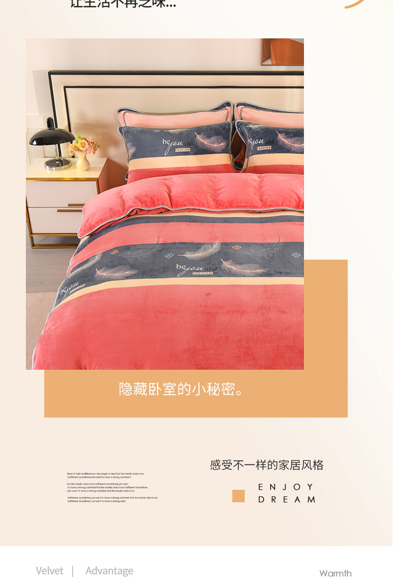 当前位置: 91家纺网 > 商品网购 > 床品套件 > 四件套 > 牛奶绒四件套 > 莱凯家纺 2025新款牛奶绒四件套保暖加厚金貂绒套件羽你同行