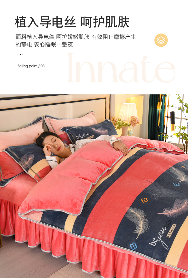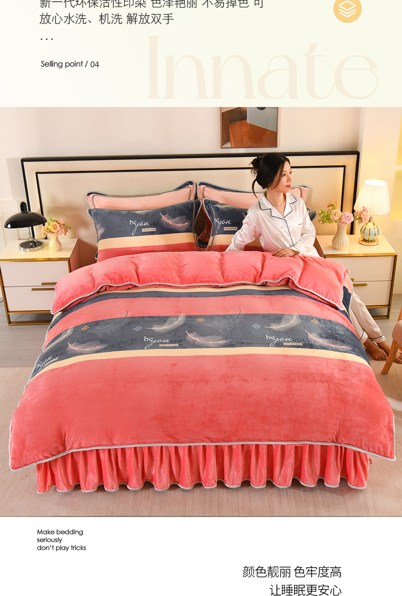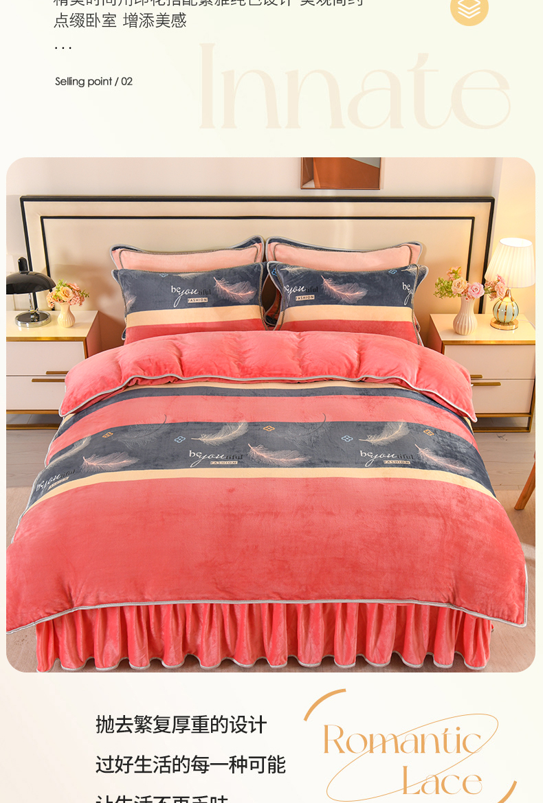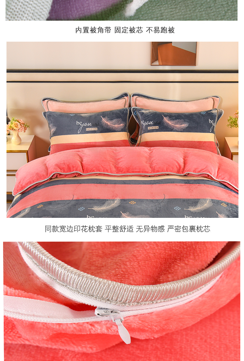 当前位置: 91家纺网 > 商品网购 > 床品套件 > 四件套 > 牛奶绒四件套 > 莱凯家纺 2025新款牛奶绒四件套保暖加厚金貂绒套件羽你同行
