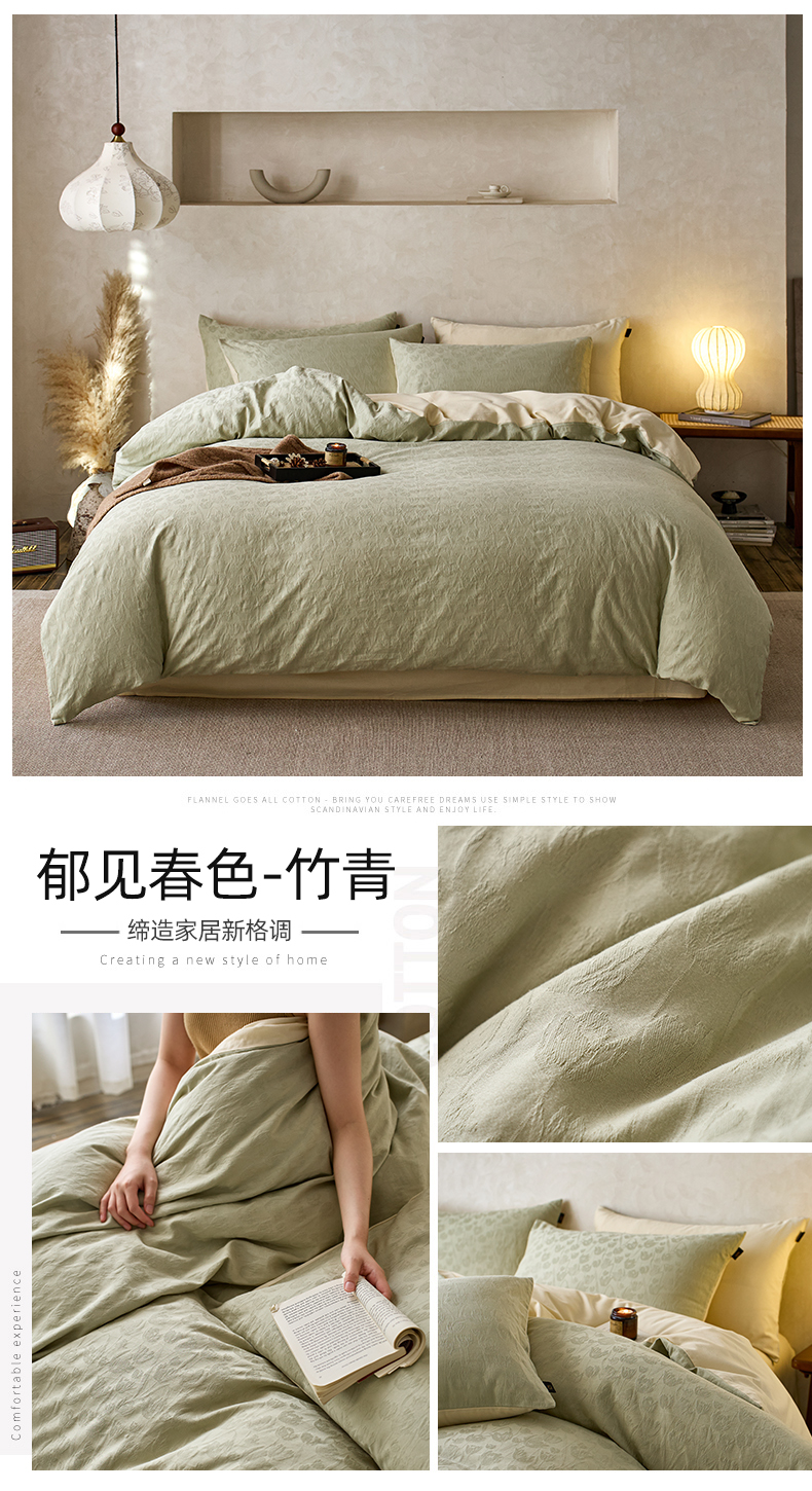 当前位置: 91家纺网 > 商品网购 > 床品套件 > 四件套 > 普通磨毛四件套 > 禾时 2025新款60s轻奢提花磨毛四件套-郁见春色 郁见春色-竹青
