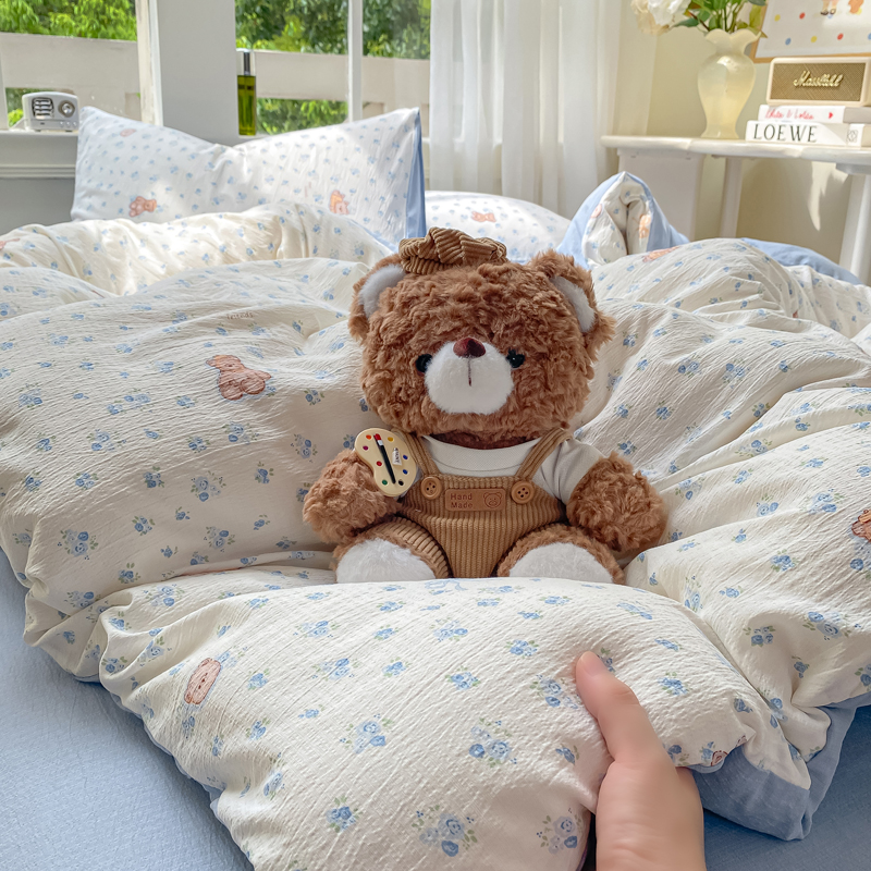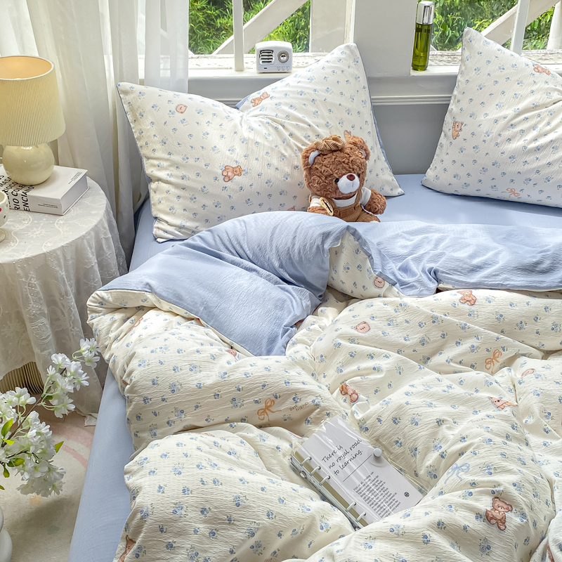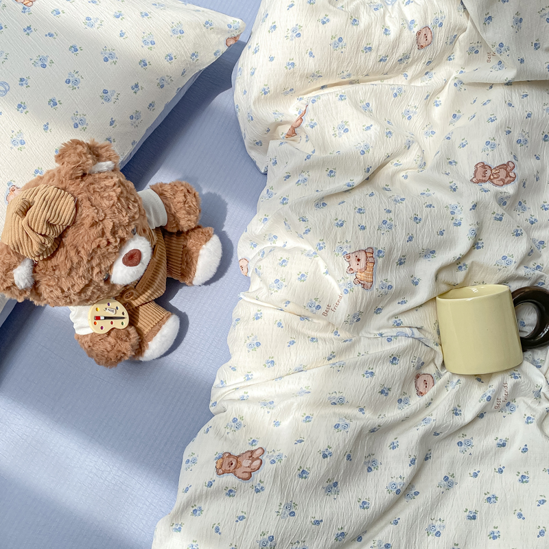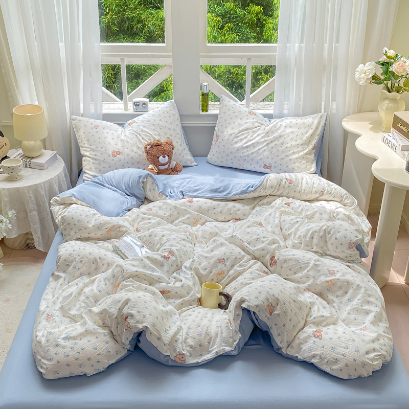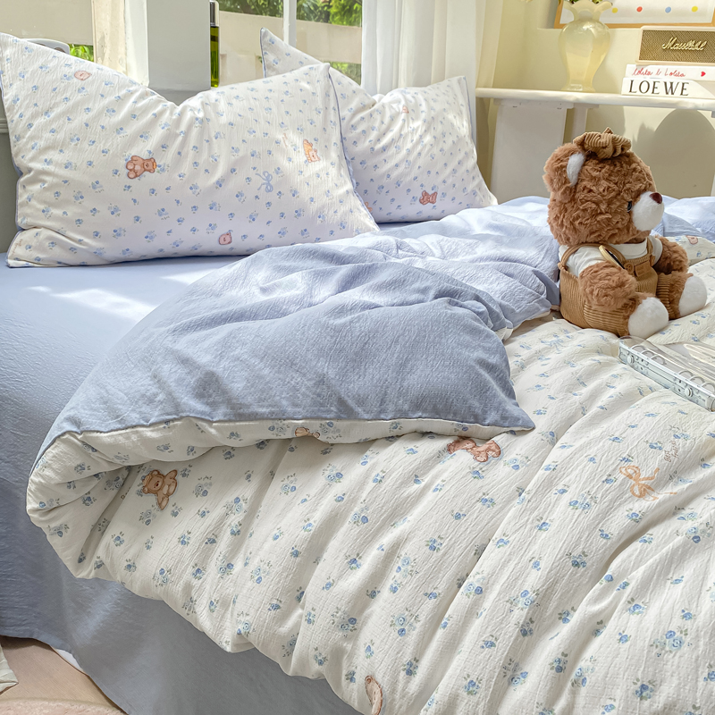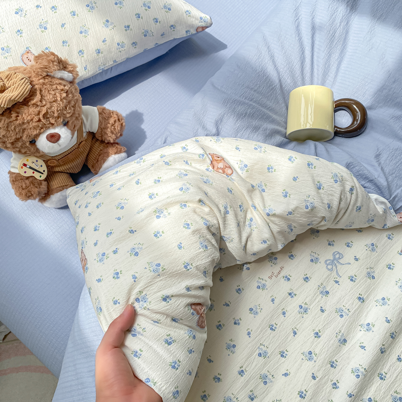 商品名称:朵朵家纺 2025新款云感提花双层纱印花单品被套 花町小能蓝