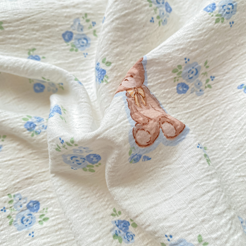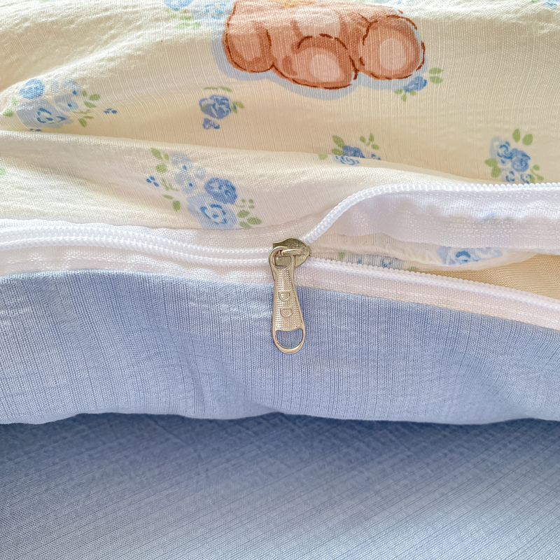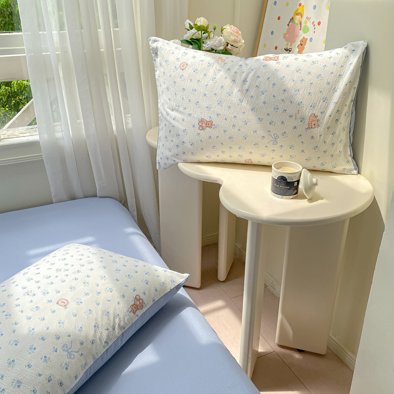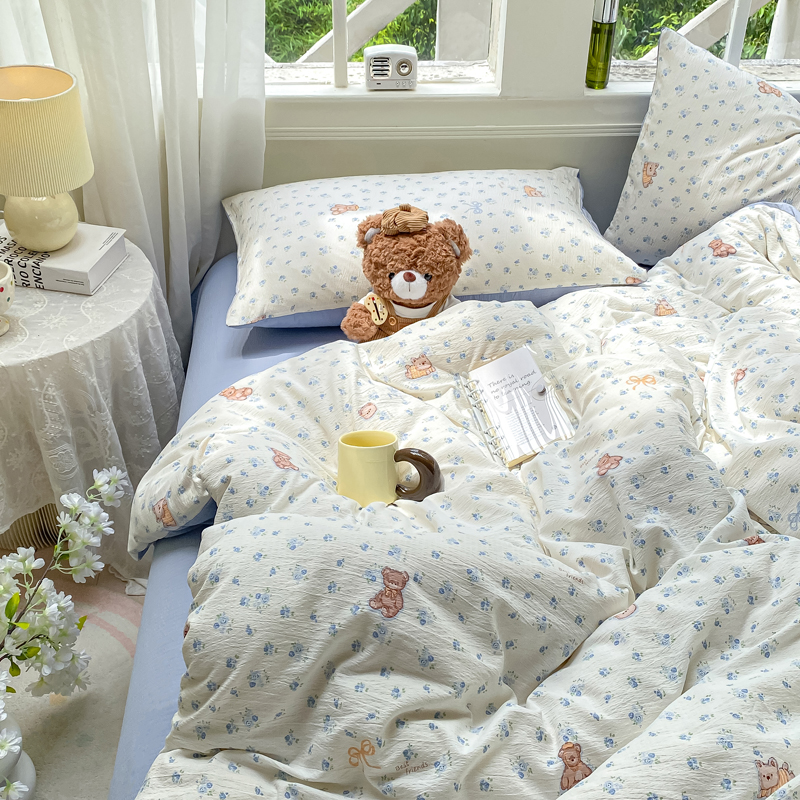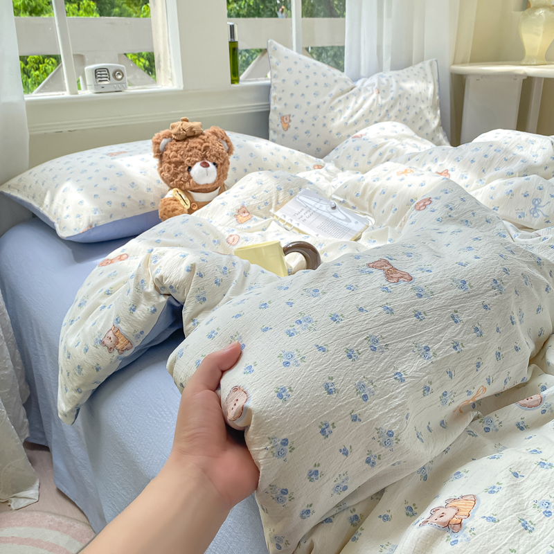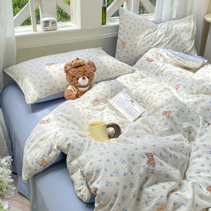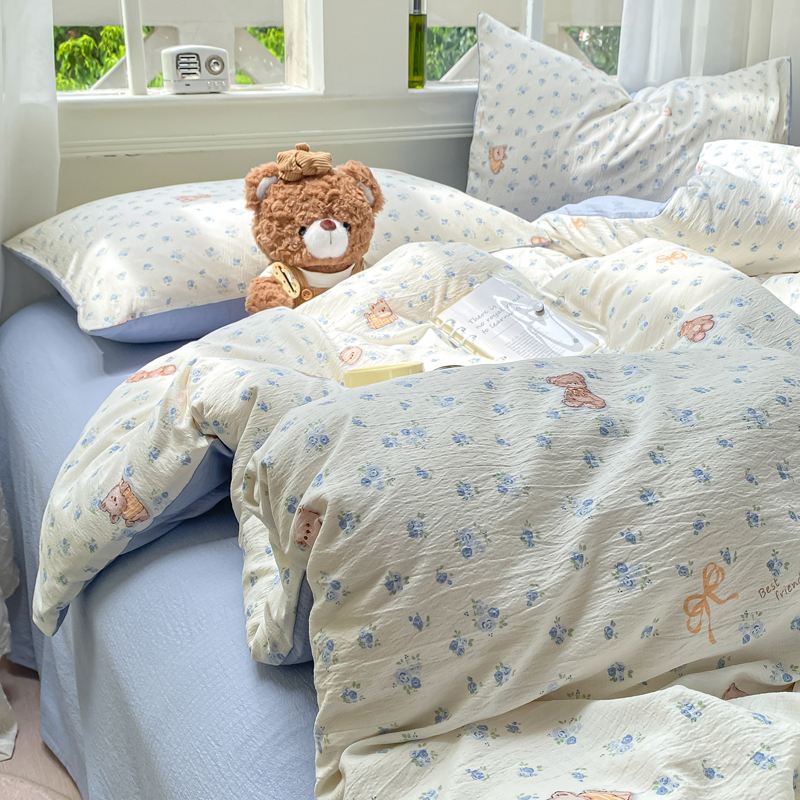 商品名称:朵朵家纺 2025新款云感提花双层纱印花单品被套 花町小能蓝
