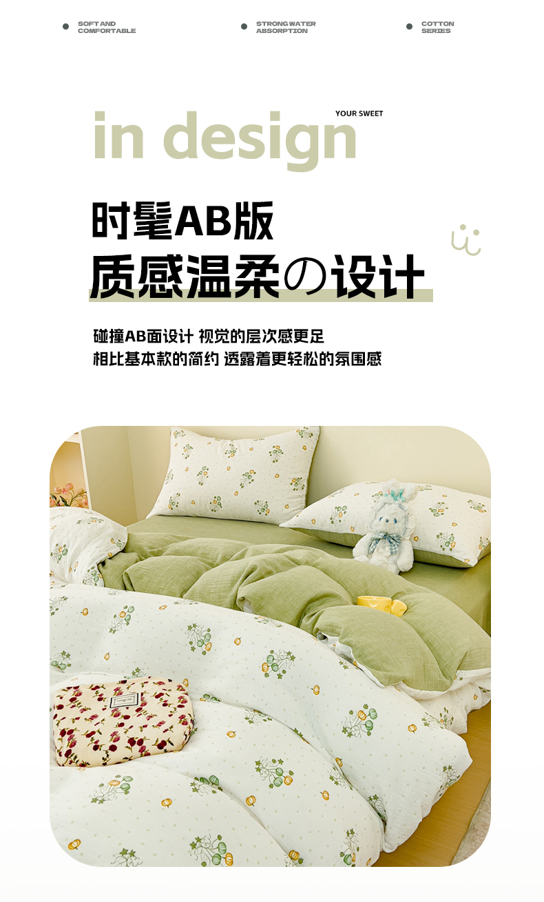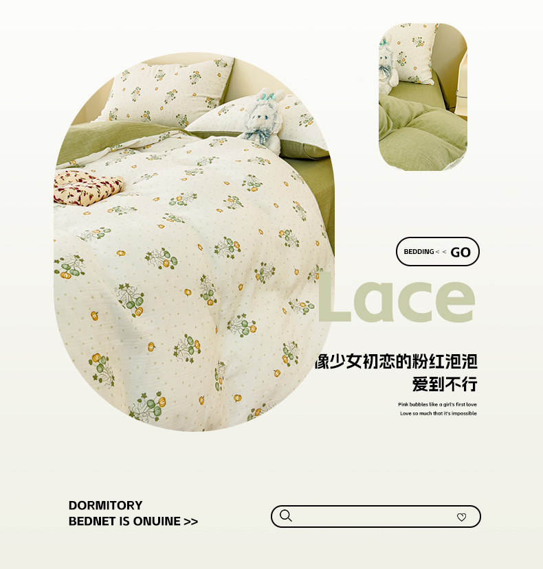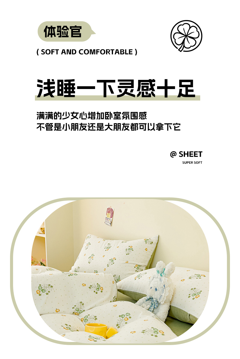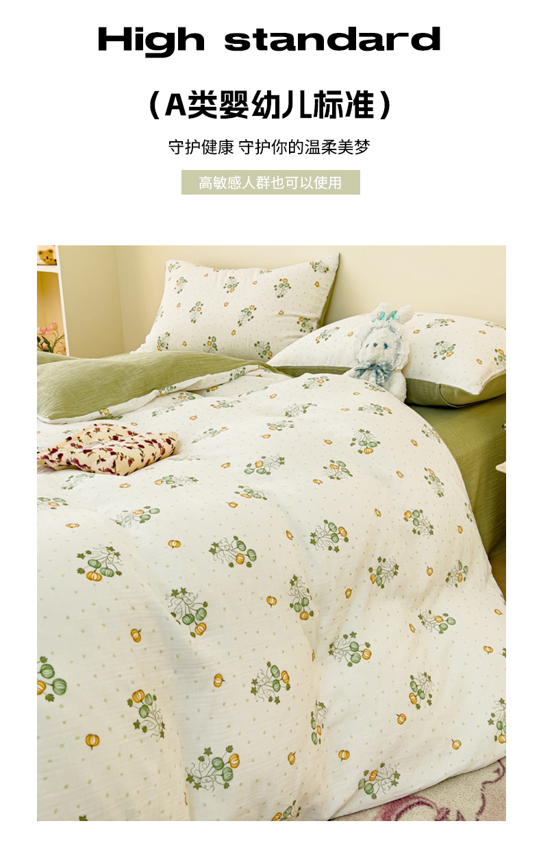 木楌家居 2025春夏新品全棉A类皱皱纱印花四件套 小南国