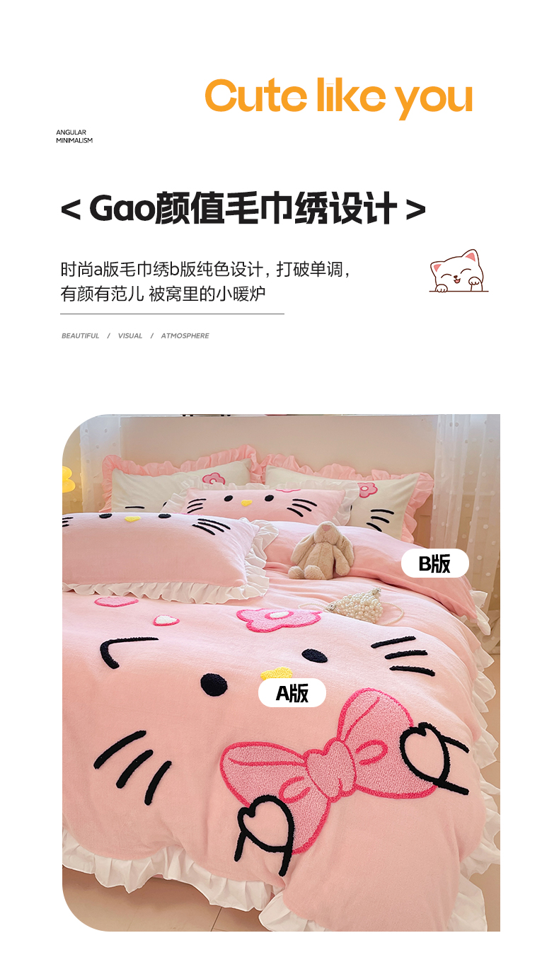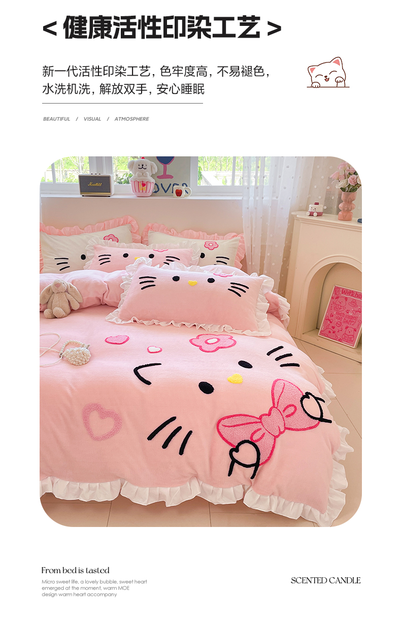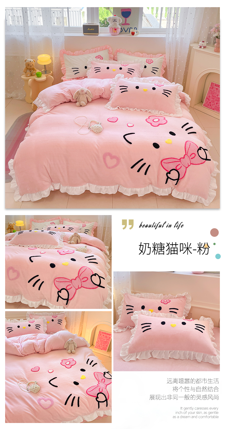 商品名称:(总)泉欣家纺 2025新款牛奶绒公主风毛巾绣花床单款床笠款四件套三件套奶糖猫咪(专版)